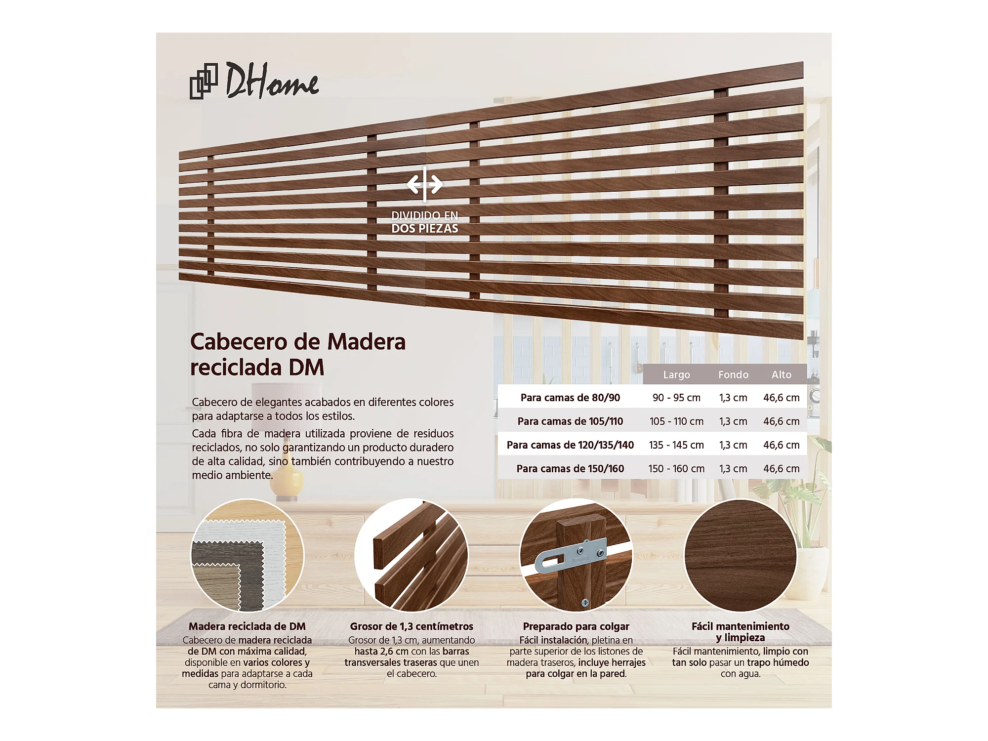 9. DHOME Tête de Lit DM Bois Recyclé Double Style Palette Japonaise Divisée en 2 Pièces 180x46cm Lits 180 - Bois de Noyer