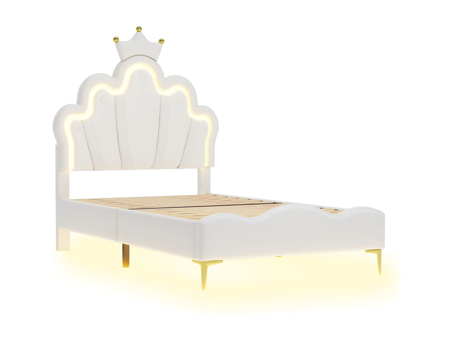 Lit Enfant 90x200cm, Lit pour Enfant rembourré avec lumière LED réglable, pour Fille Adolescente avec tête de Fleur et sommier à Lattes, sans Matela, Blanc