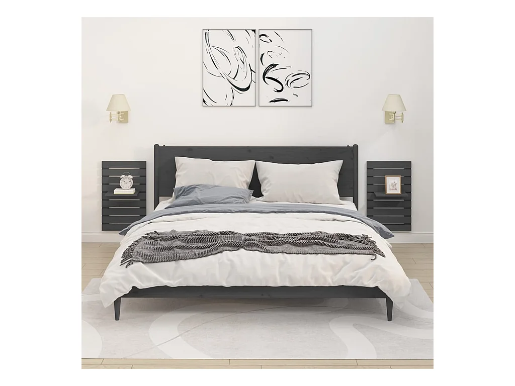 Abdeslam Étagères de chevet murales 2 pcs Gris Bois de pin massif