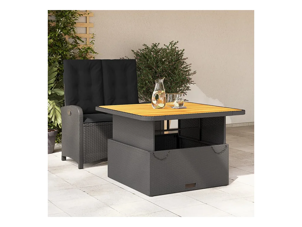 Abington Ensemble à manger de jardin coussins 2pcs noir résine tressée