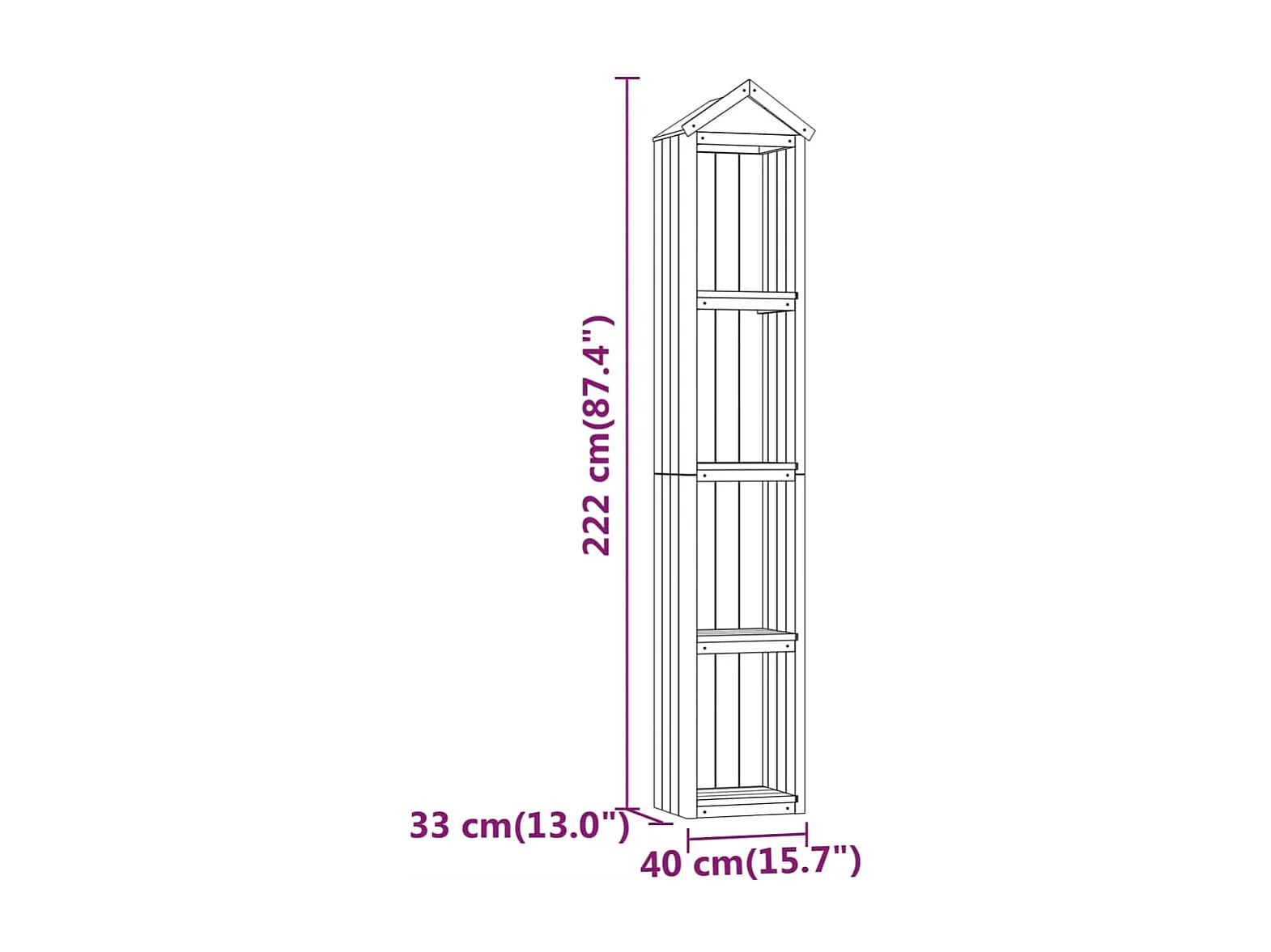 Abri à outils de jardin 40x33x222 Bois de pin imprégné