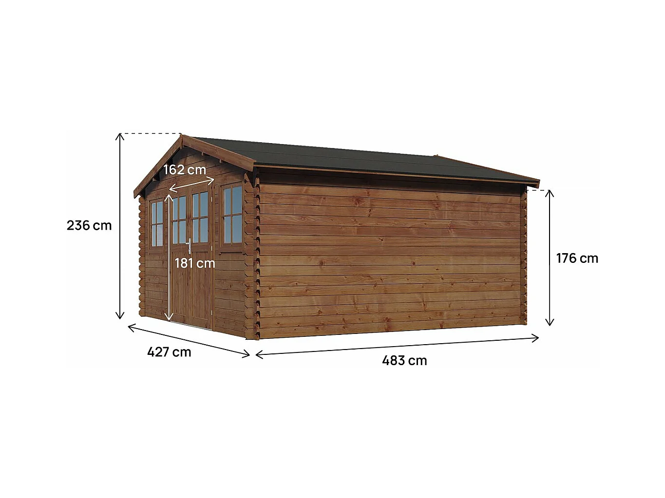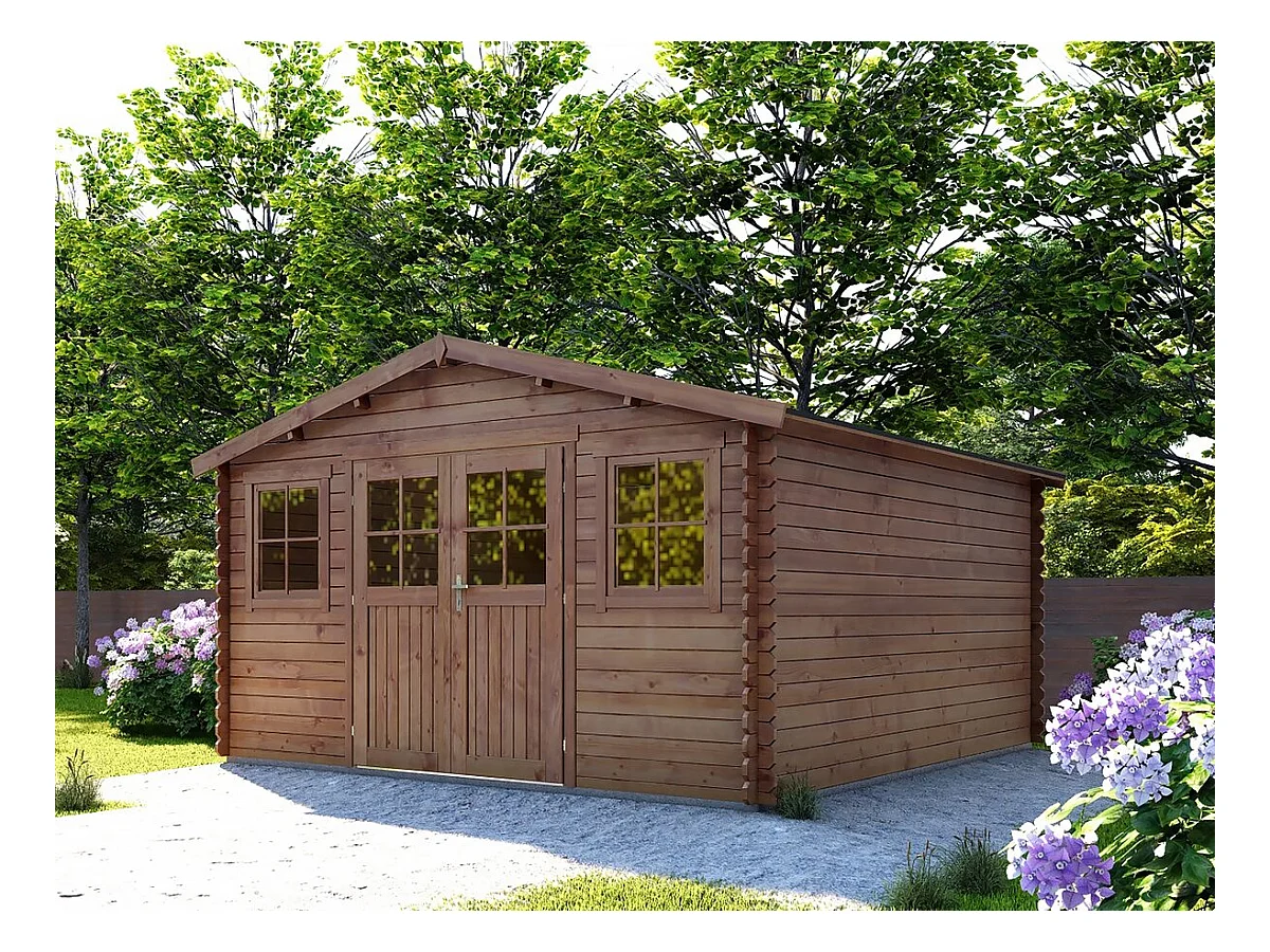 Abri de jardin bois traité autoclave marron "Lormont" - 21,2 m² - 28 mm