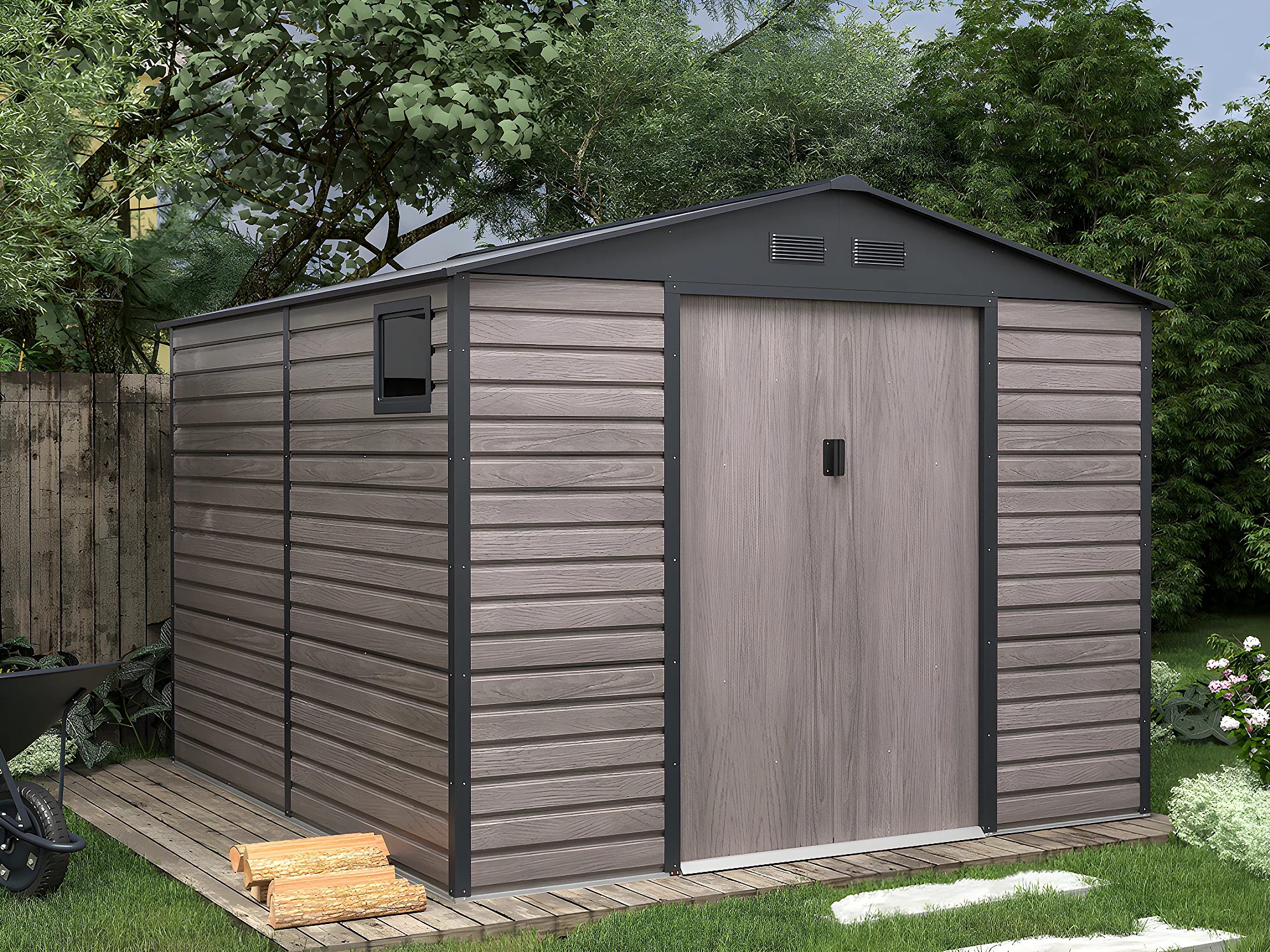 Abri de jardin métal en acier galvanisé effet bois gris 8,94 m² - ADELMO