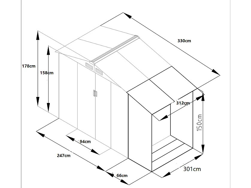 Abri de jardin métal avec abri bûche en acier galvanisé gris 10,29 m² - LERY