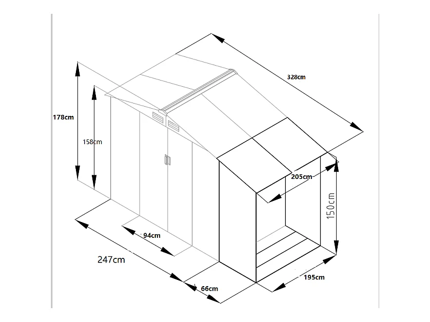 Abri de jardin métal avec abri bûche en acier galvanisé gris 6,7 m² LERY