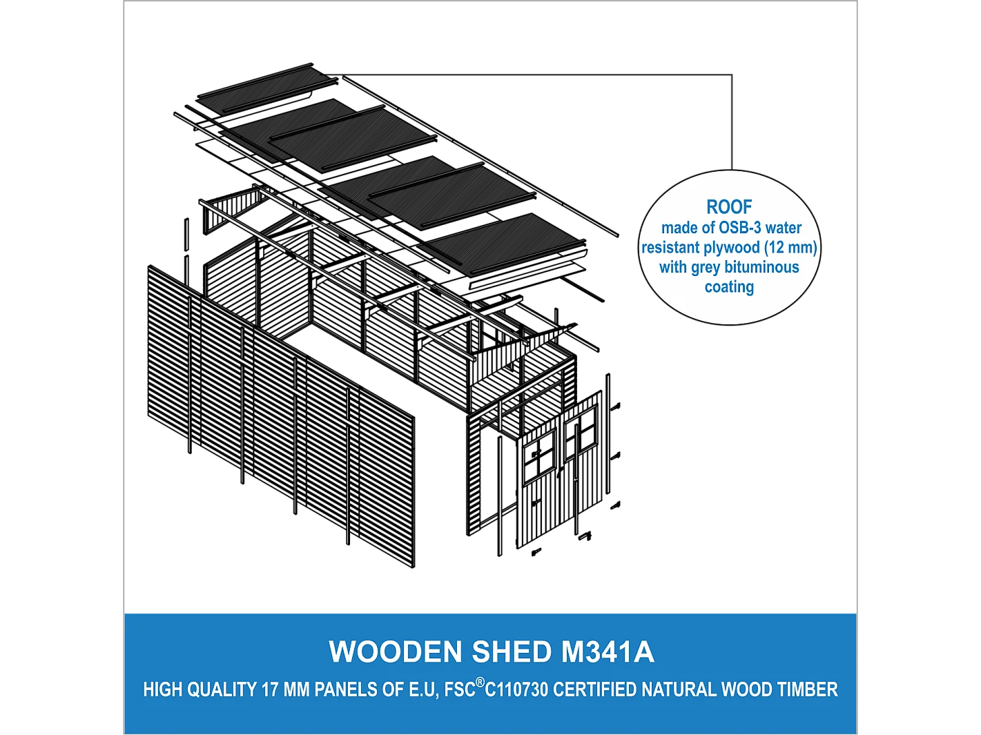 Abri de jardin en bois (avec paroi latérale) - 10 m2 - M341A