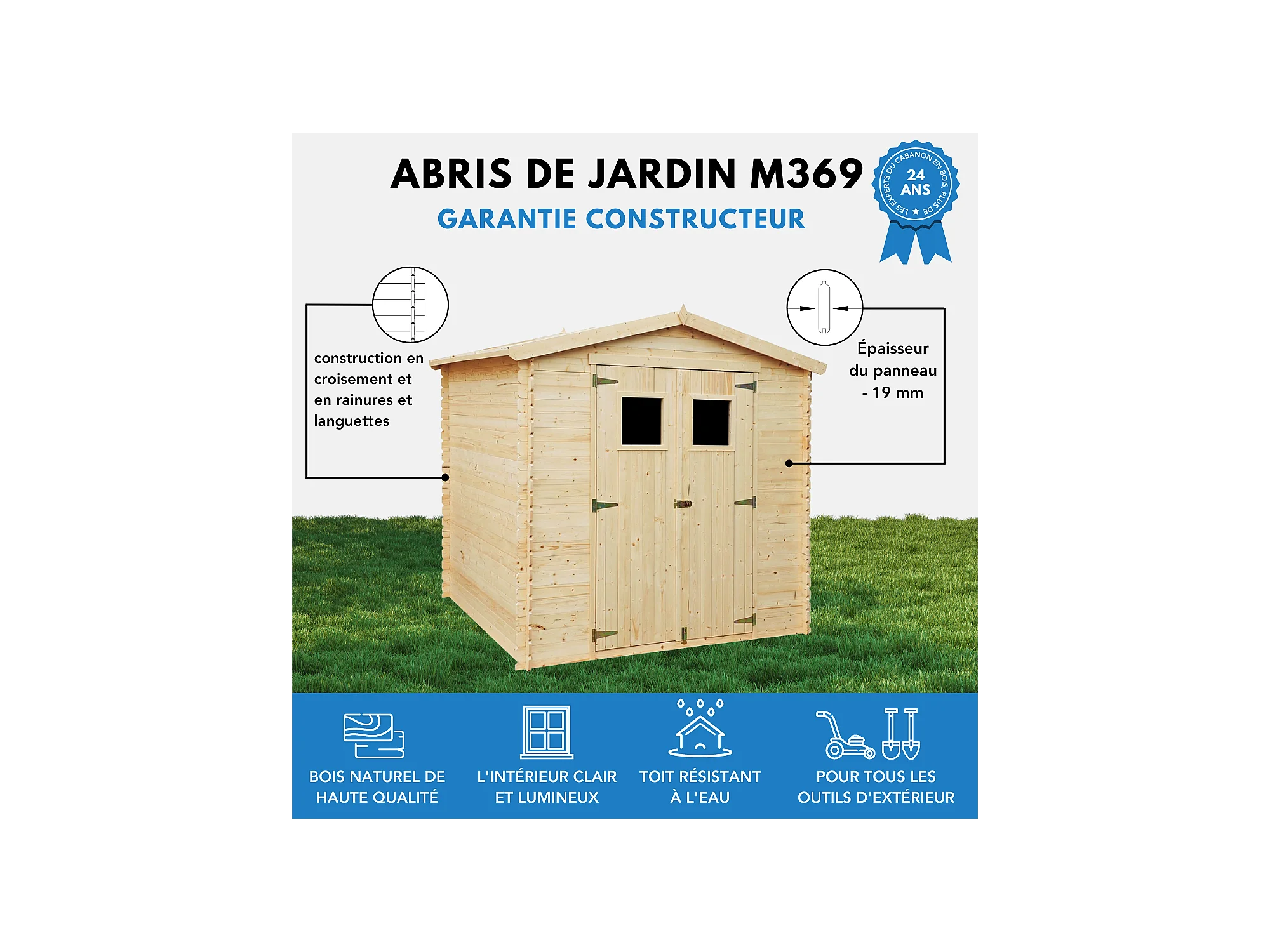 Abri de jardin en bois avec plancher LP ProStruct - 226x236xH224 cm / 4.33 m² - M369+M369G