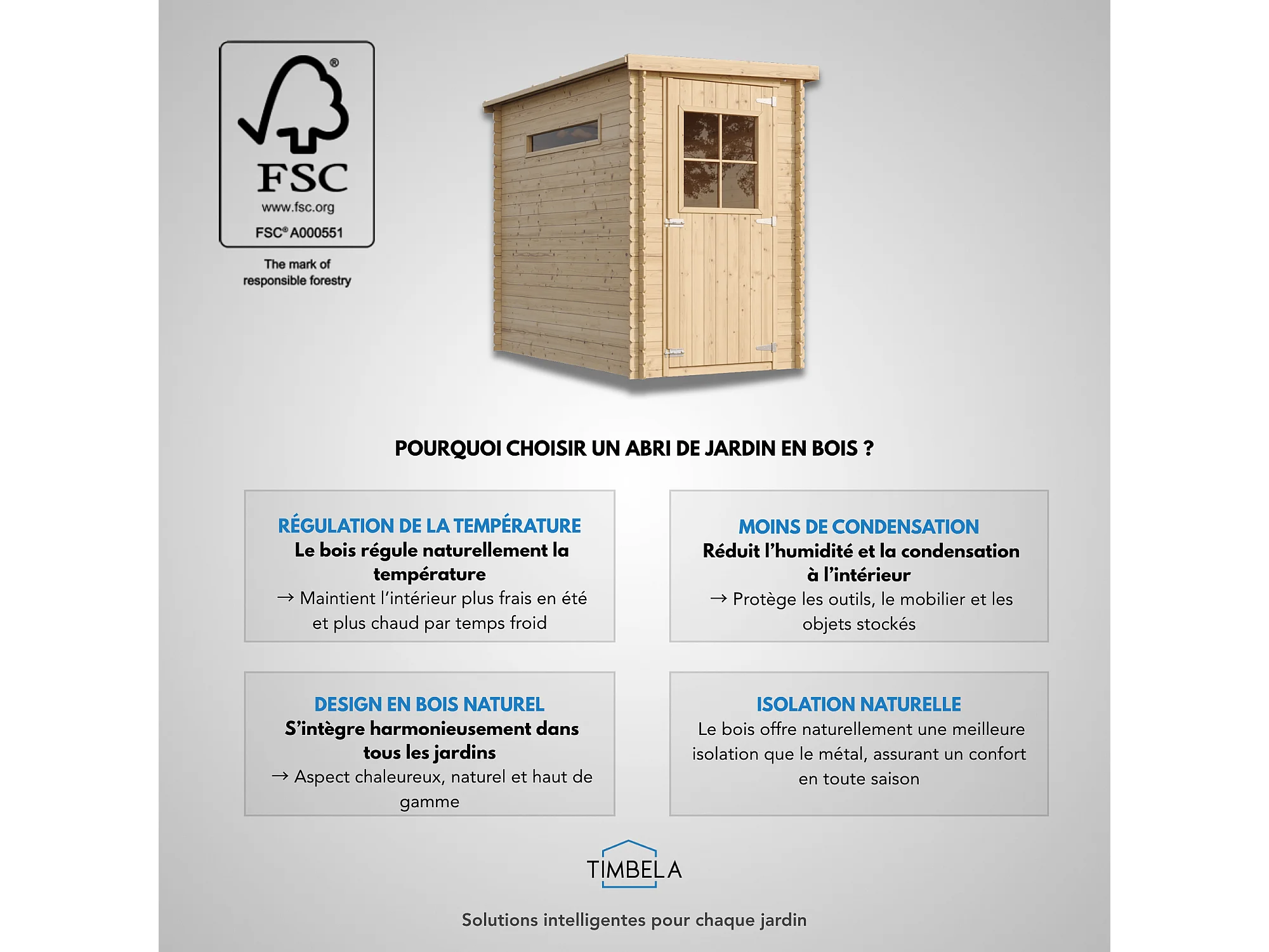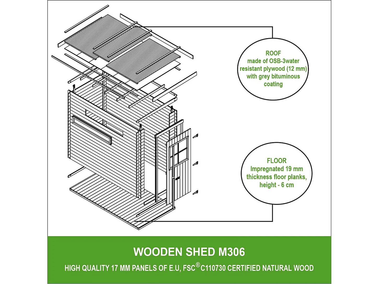 Abri de jardin en bois avec sol traité - l239xL144xH198 cm/2.63 m2 - M306+M306G