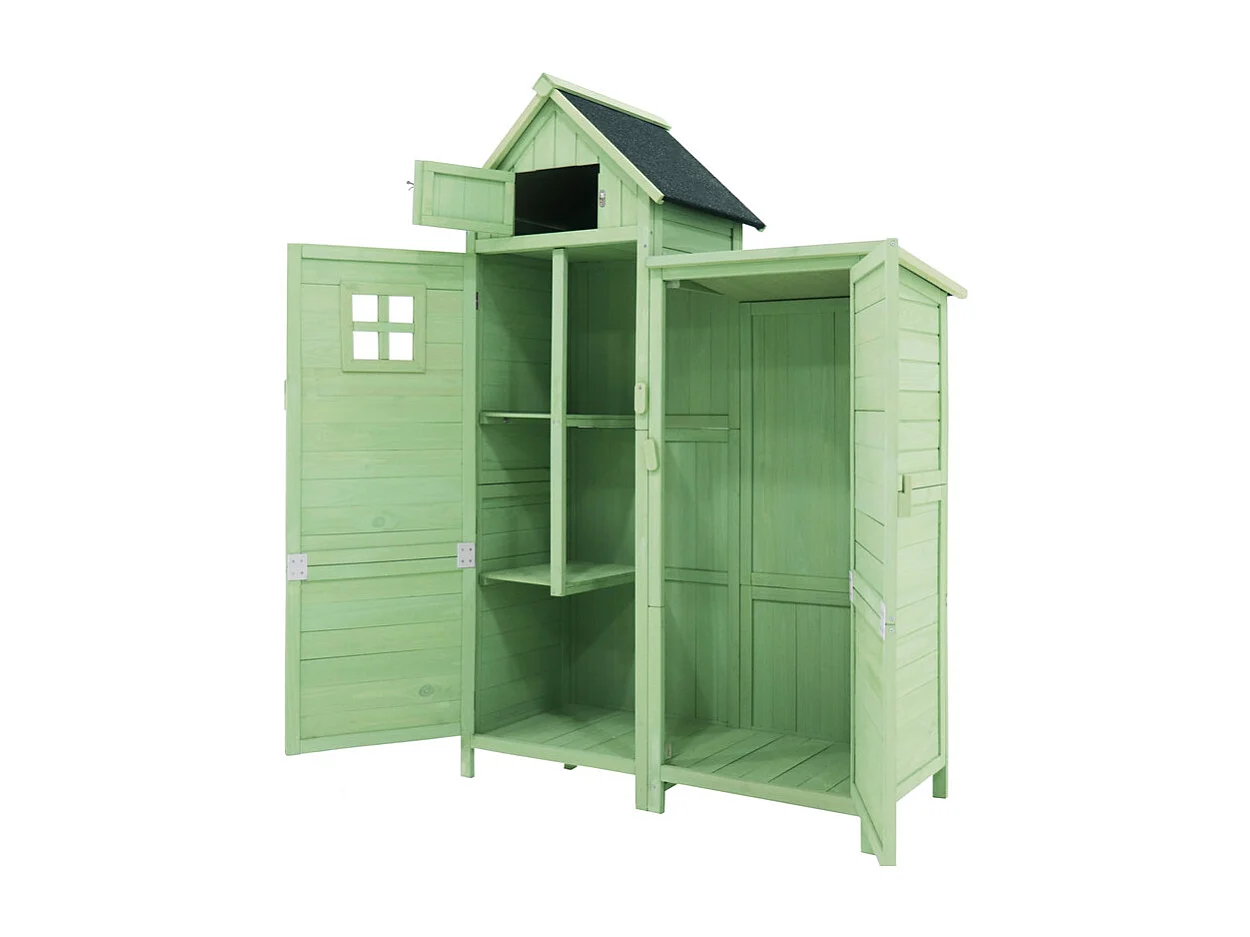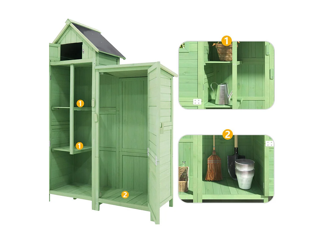 Abri de jardin en bois de sapin - remise à outils avec 2 étagères intégrées - H 173 cm - toit imperméable en PVC - Vert