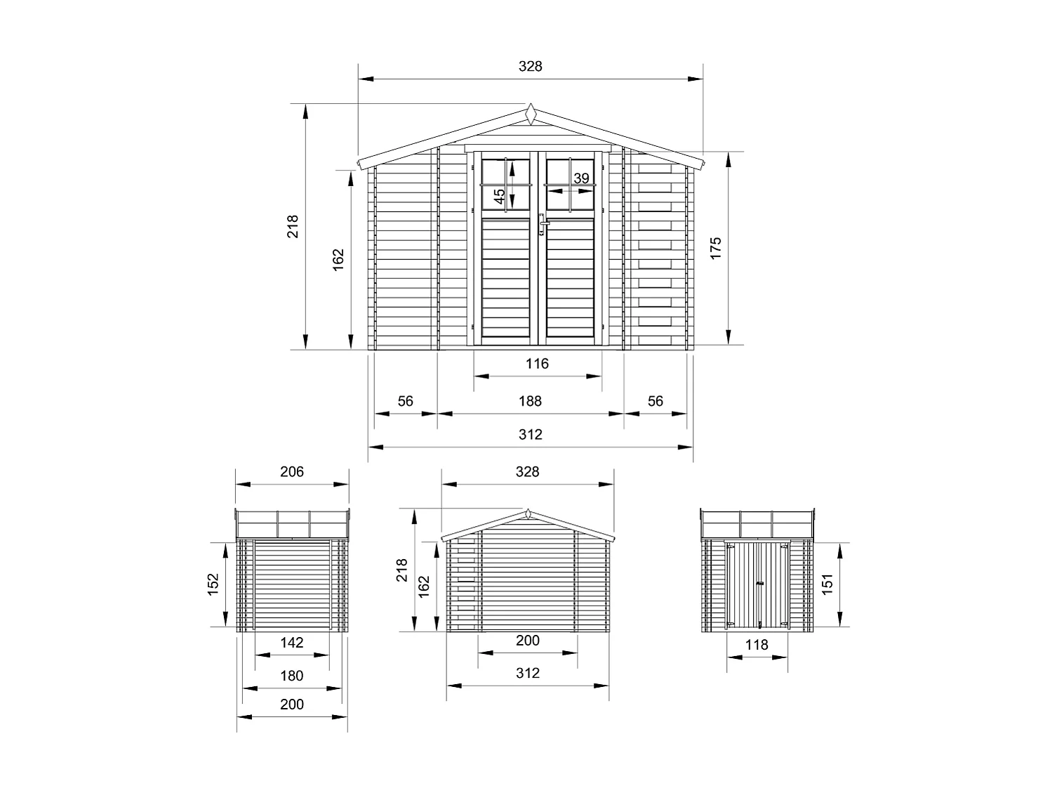Abri de jardin en bois et range bûches avec sol traité - 3,53 + 0,97+0,97 m2 - M389F+M389G