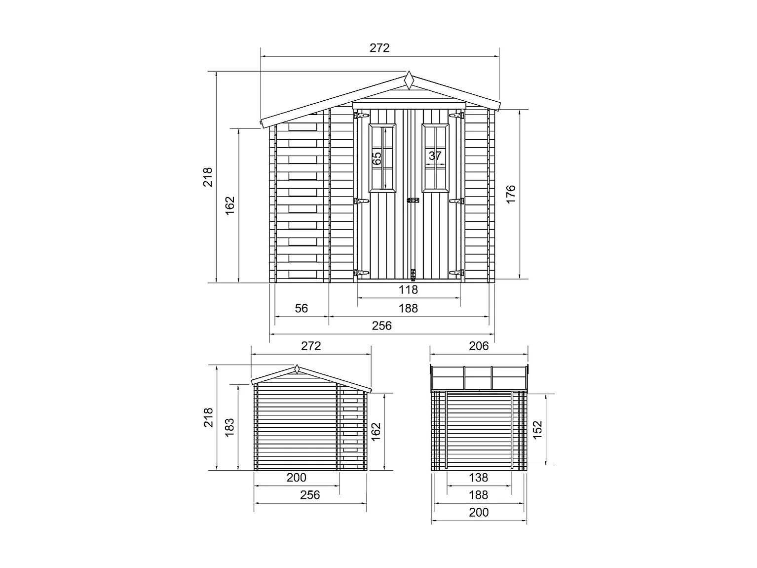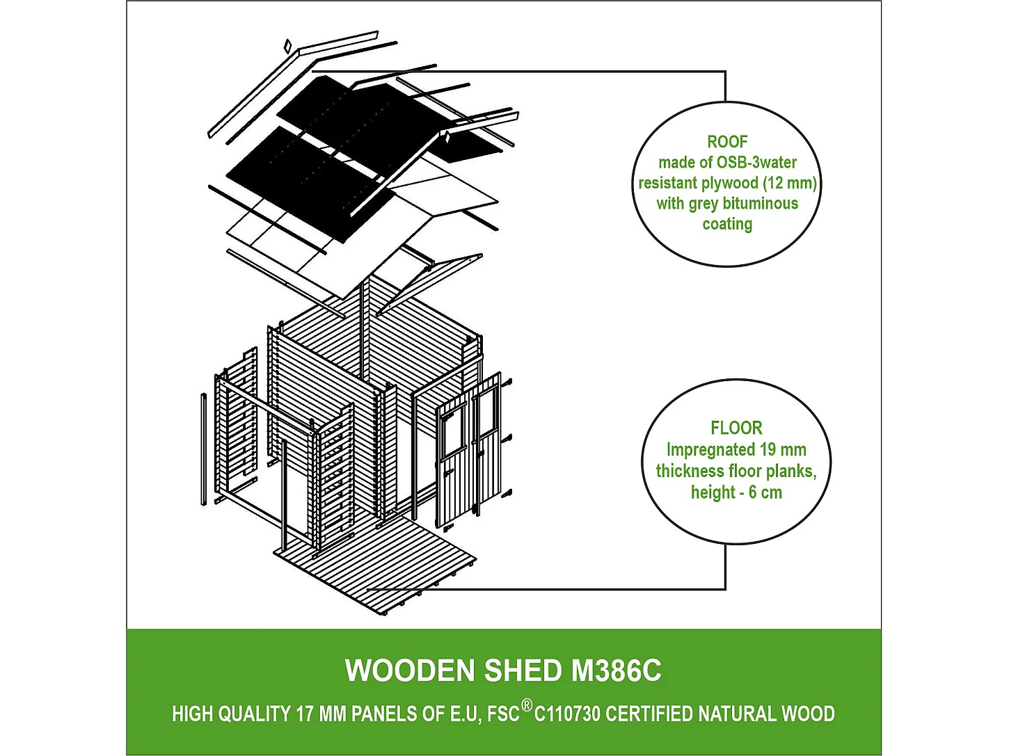 Abri de jardin en bois et range bûches extérieur avec sol traité - 3,53 + 0,97 m2 - M386C+M386G