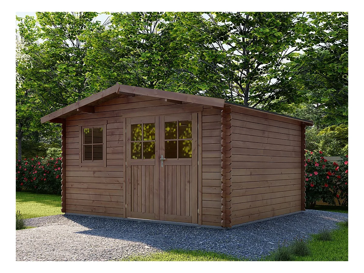 Abri de jardin en bois traité marron autoclave "Valmont" - 14 m² -28 mm