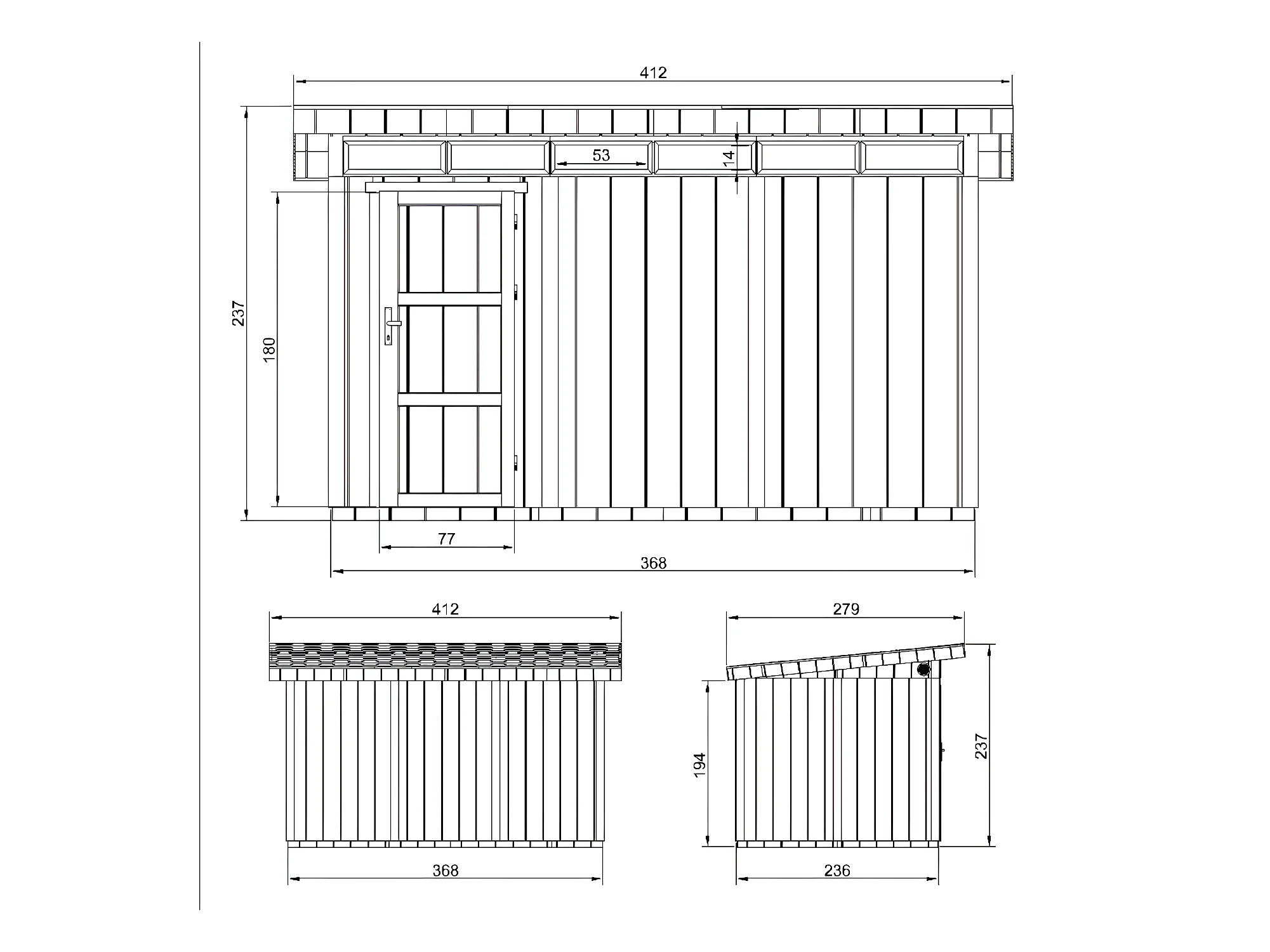 Abri de jardin en bois LES PLANCHERS IMPRÉGNÉ- H246x418x220 cm/8 m²- TIMBELA M332+M332G