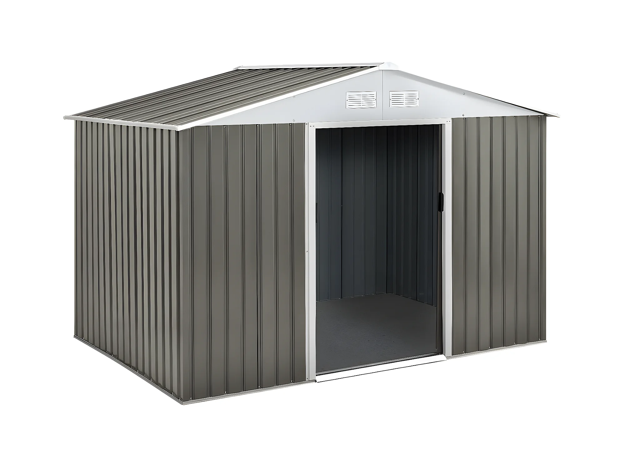 Abri de Jardin Métal 8,7㎡- 2 Portes Coulissantes Verrouillables, 4 Trous d’Aération, Toit Penché, Cabane Exterieur pour Vélo, Poubelle, 340 x 255 x 210 cm (Gris)