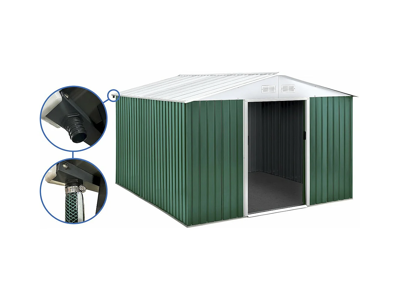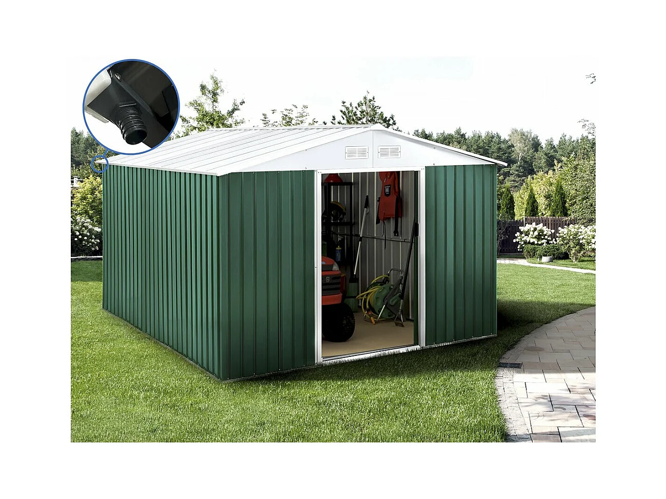 Abri de jardin métal - "Rosas " - 10.85 m² avec gouttière - Vert