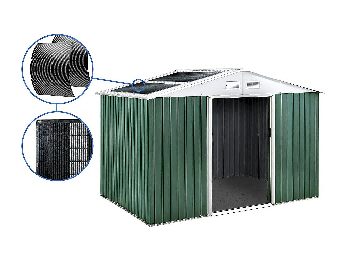 Abri de jardin métal - "Rosas "- 7,06 m² avec panneaux solaires - Vert