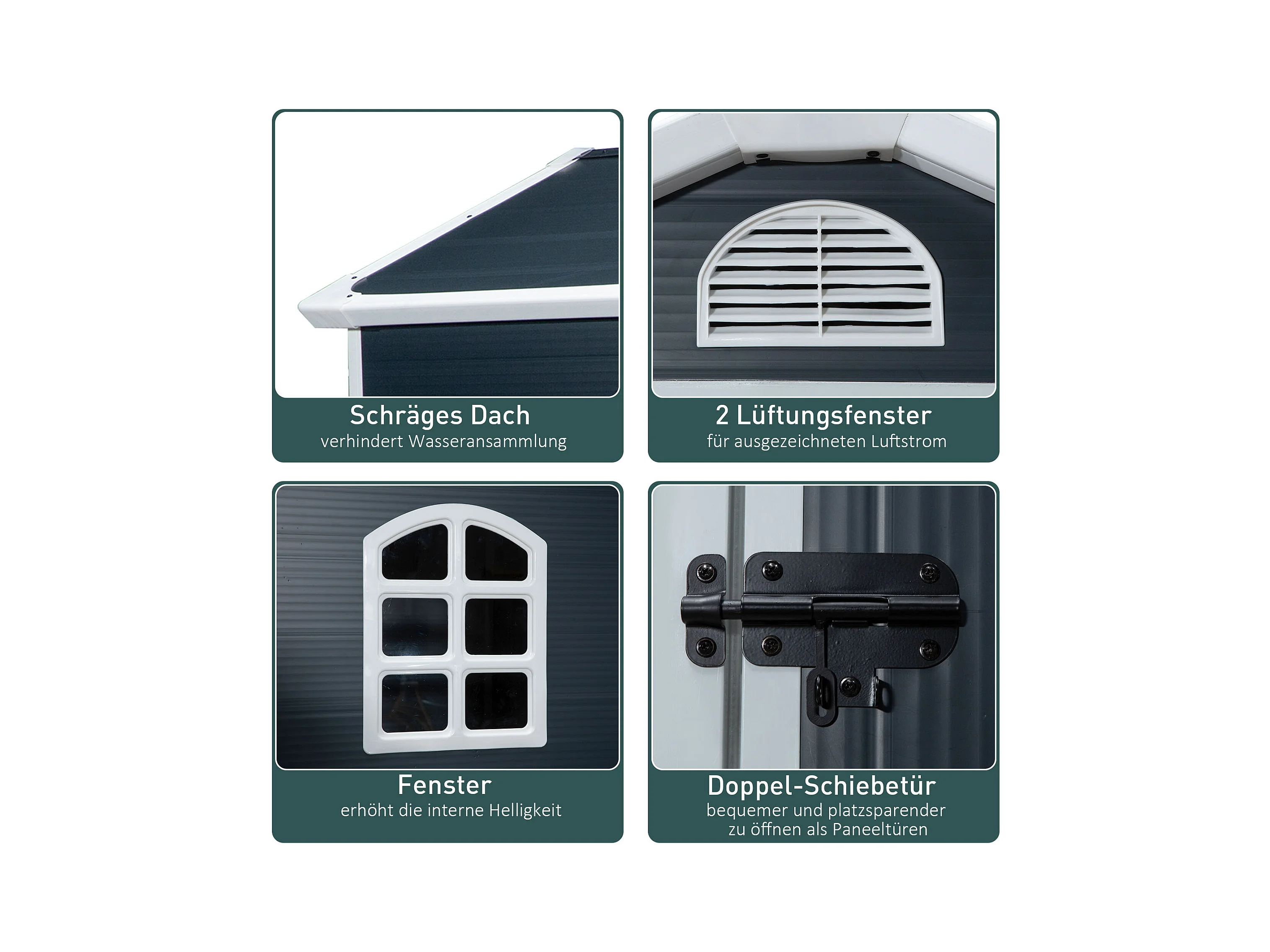 Abri de Jardin en Métal-2,7㎡-2 Portes Coulissantes Verrouillables-4 Trous d’Aération-Toit Penché/Cabane Jardin-213,5 x 127 x 194,5cm-Gris