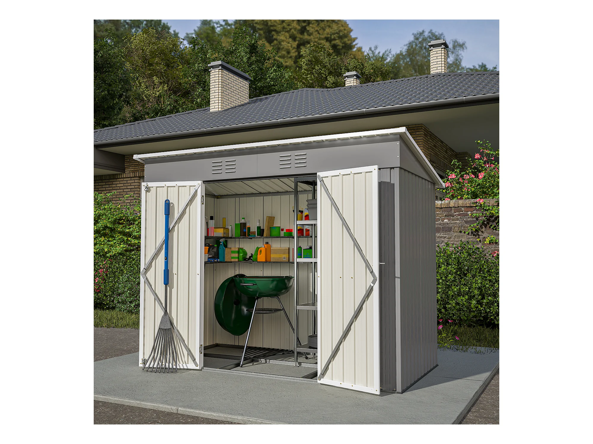 Abri de jardin métallique avec fenêtre de ventilation, toit en appentis, gris (134x104x204cm)