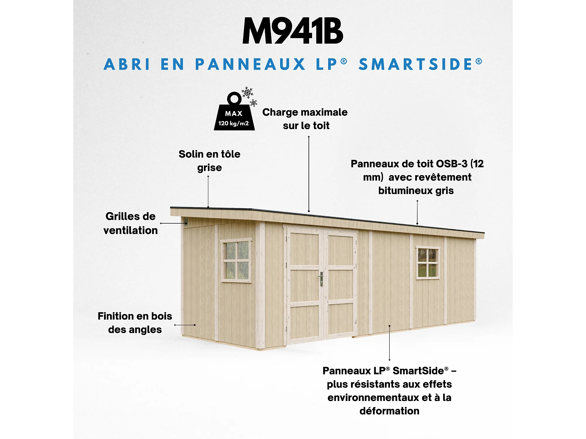 Abri de jardin qualité premium - 14,3 m² - H231x248x648 cm - sans plancher e paroi latérale - M941B-TERRA BROWN
