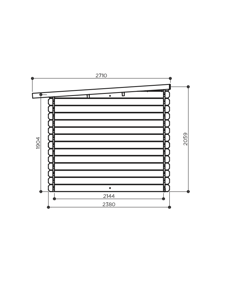 Abri jardin bois -12.25 m² - 5.15 x 2.38 x 2.06 m - 28mm