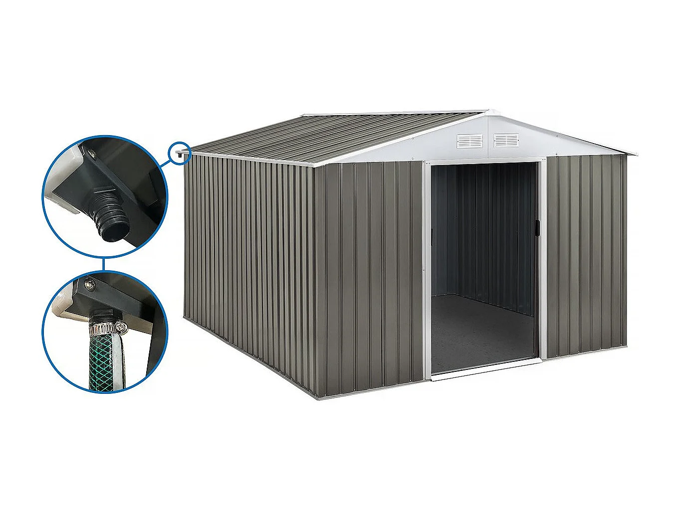 Abri jardin métal "Dallas" - 15,16 m² avec gouttière - Taupe