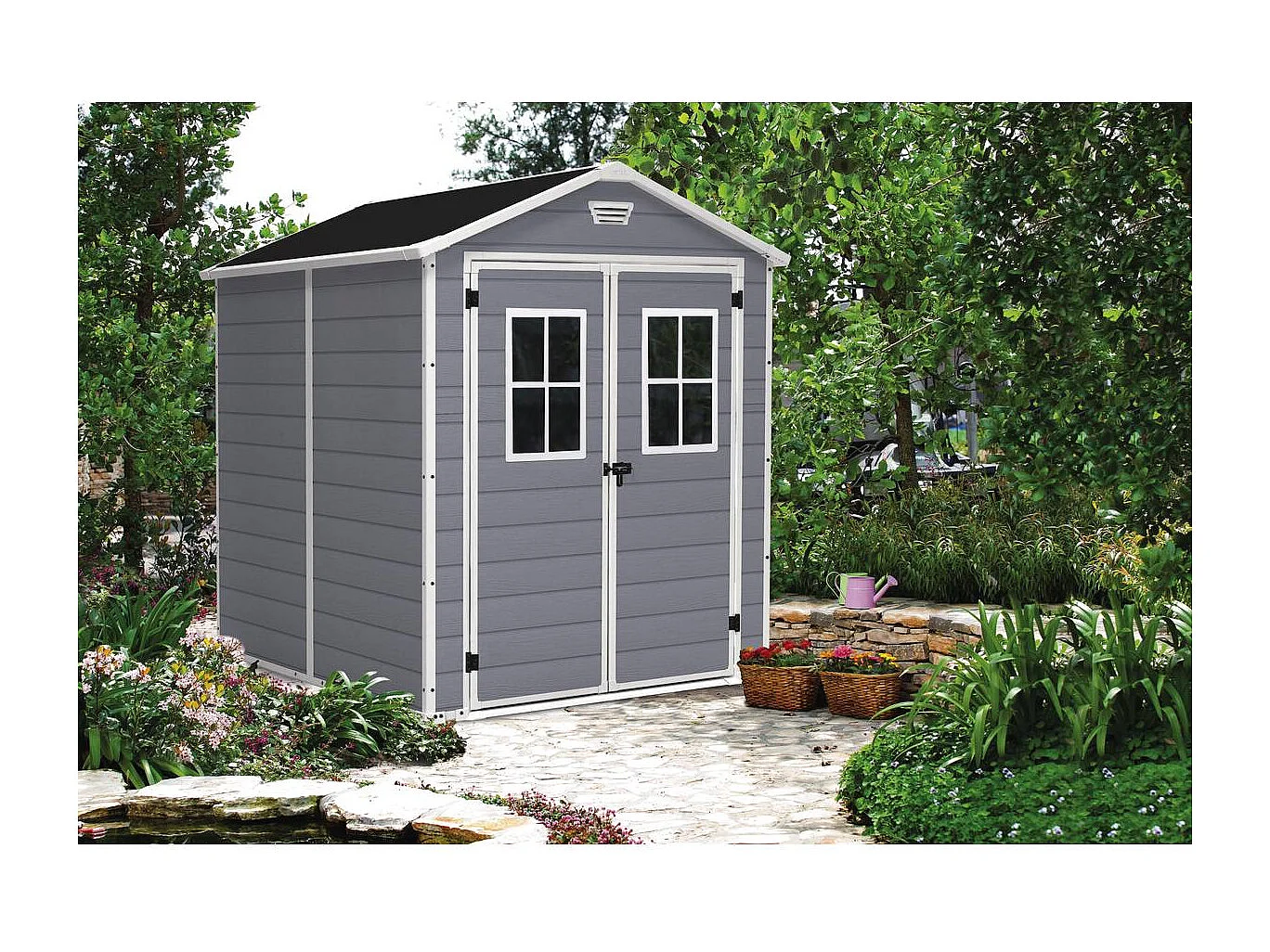 Abri jardin résine "Premium 86 DD" - 4,40m² - 186 x 237 x 227 cm- Gris/Blanc