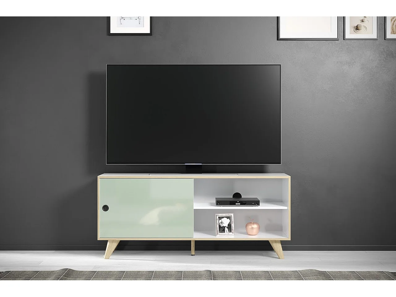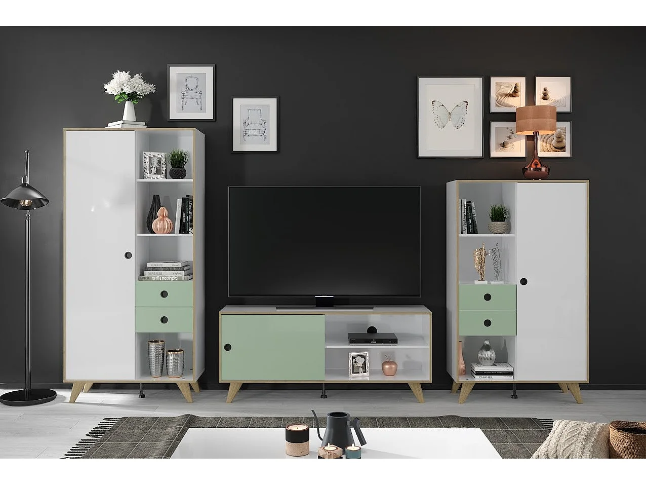 Ensemble meubles de séjour 3 pièces bois blanc, vert et naturel Mélanie