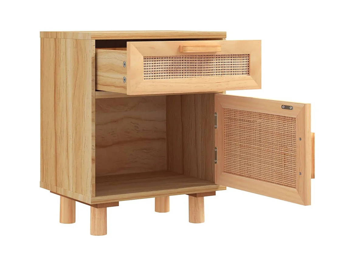 Adrian Table de chevet Marron Bois de pin massif et rotin l
