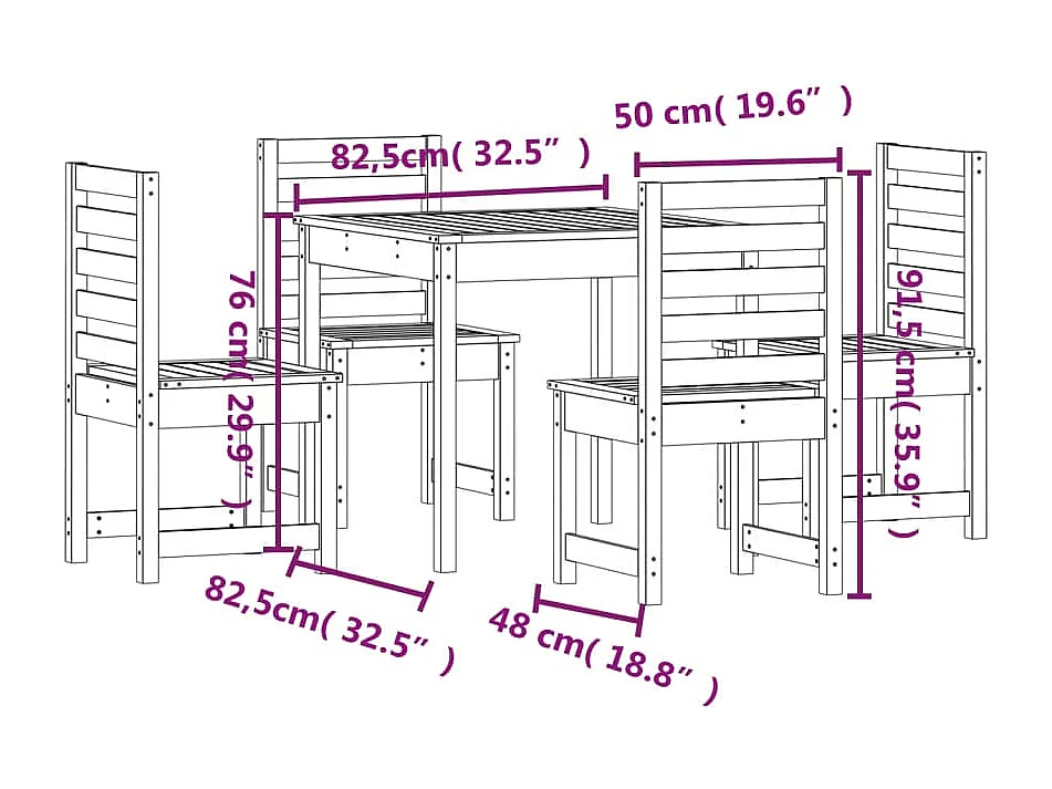 Adrien Ensemble à manger de jardin 5 pcs blanc bois massif de pin