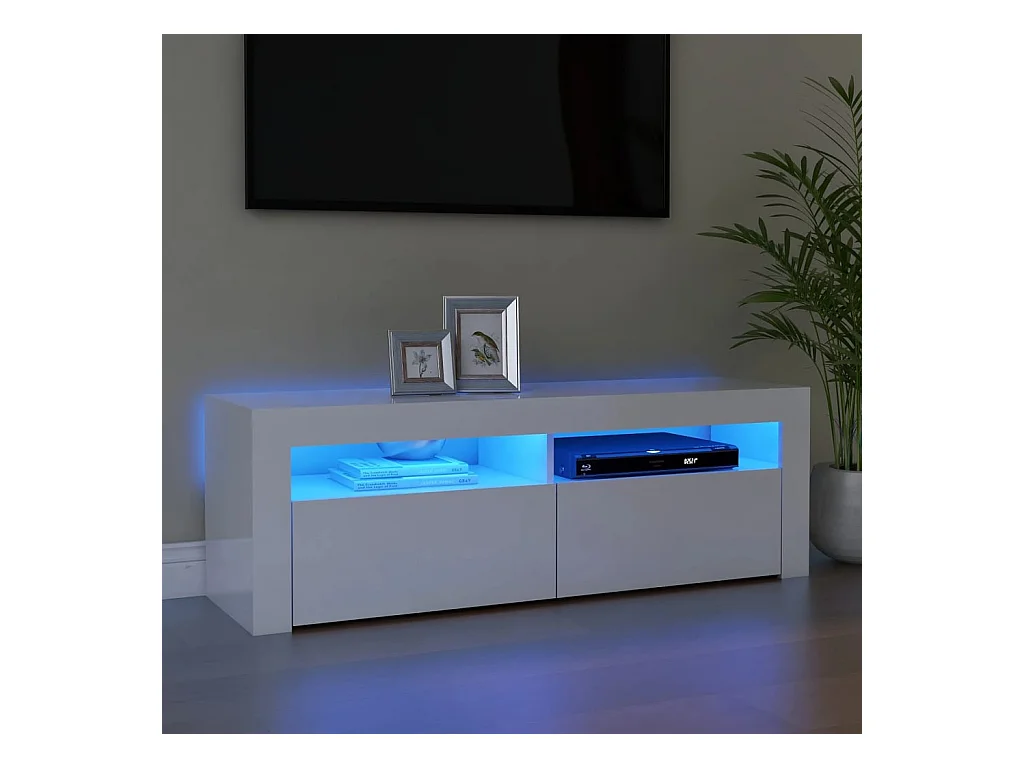 Afet Meuble TV avec lumières LED blanc brillant 120x35x40 cm