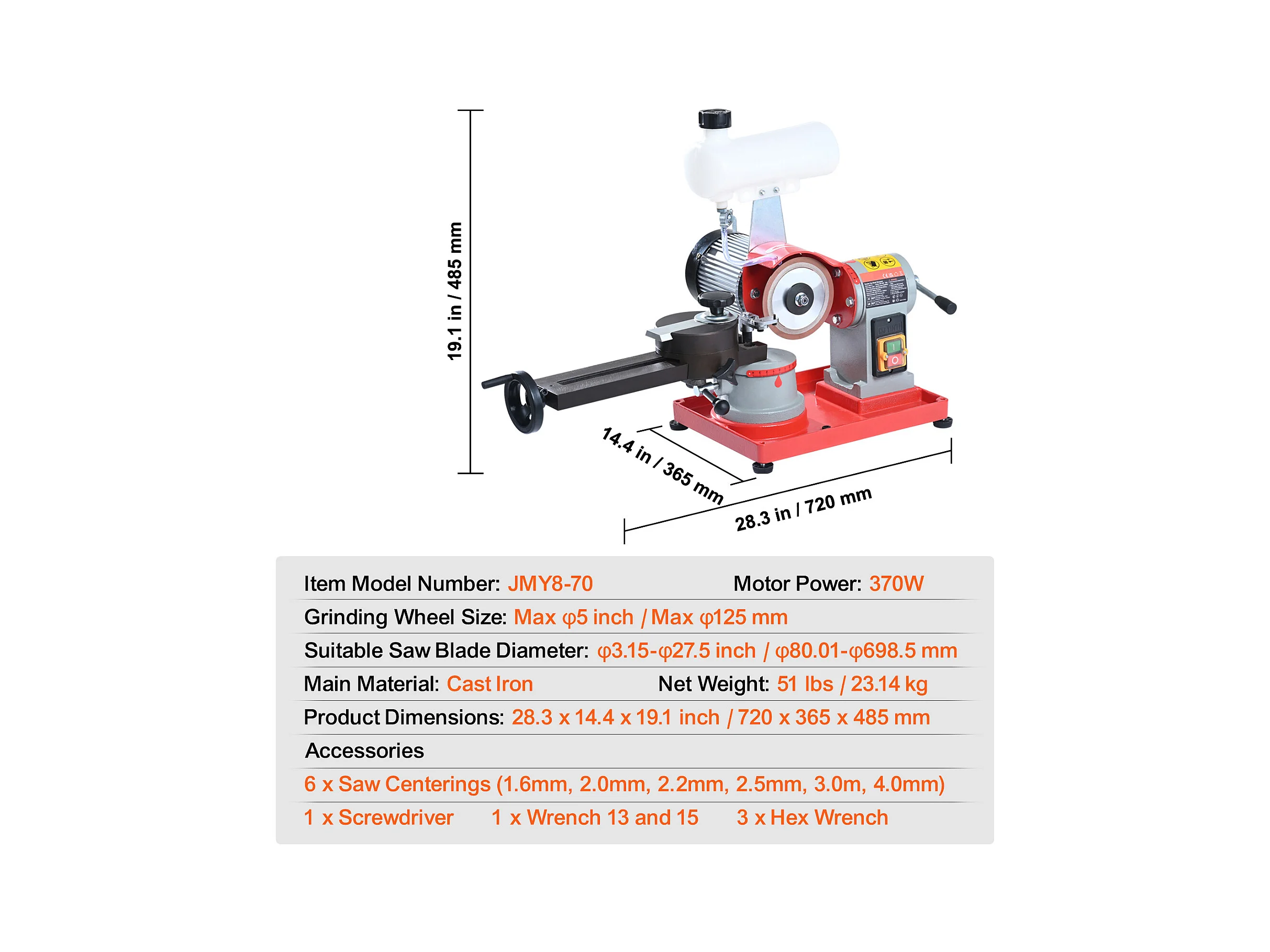 Affûteuse de Lame de Scie Circulaire SucceBuy 370 W 3 600 tr/min, Roue de 12.7 cm avec Réservoir