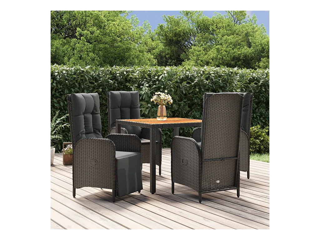 Arvild Ensemble à manger de jardin coussins 5pcs Noir Résine tressée