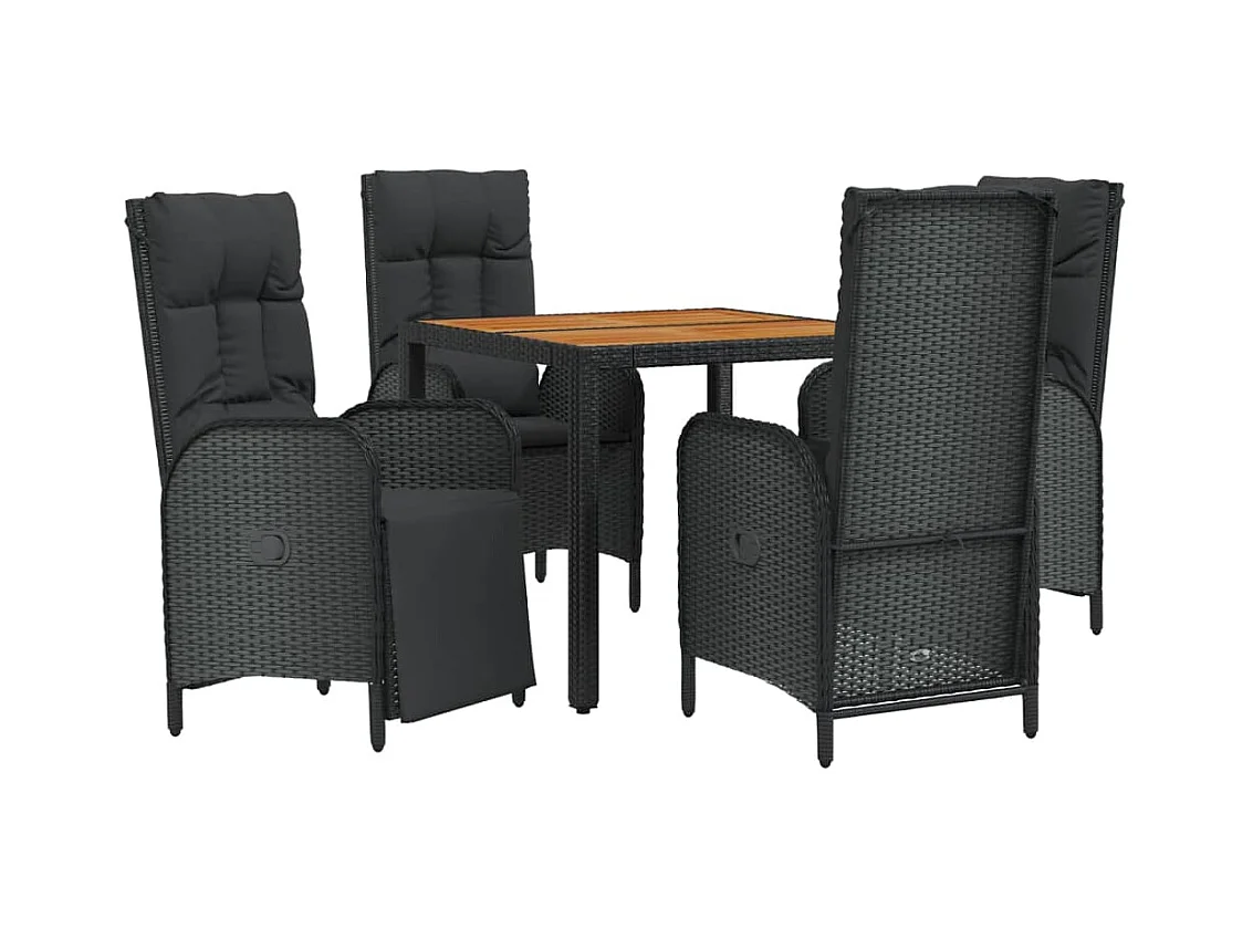 Van Buren Ensemble à manger de jardin coussins 5pcs Noir Résine tressée