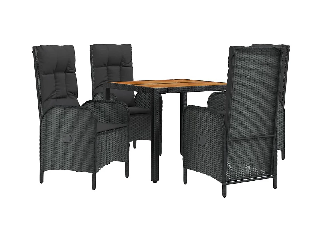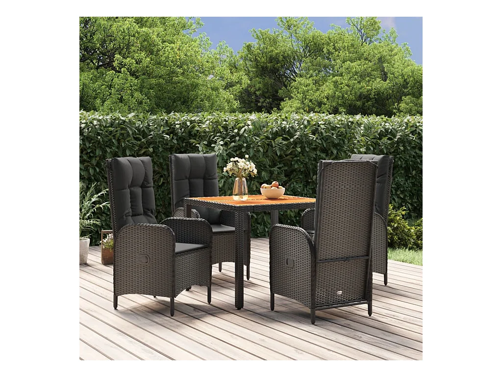 Arvild Ensemble à manger de jardin coussins 5pcs Noir Résine tressée