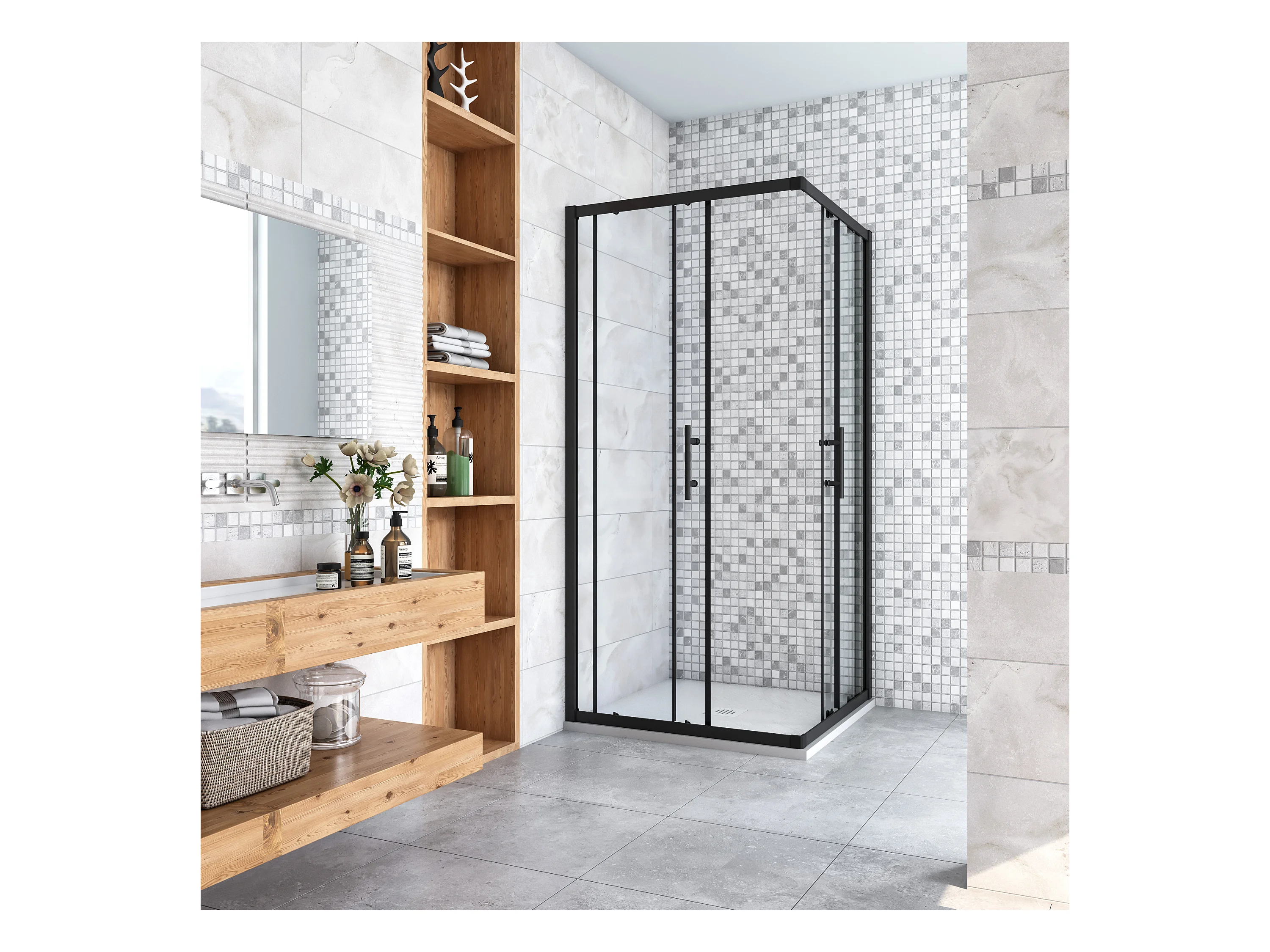 AICA Cabine de douche 80x80x200cm accès d'angle - Noir Mat , porte de douche coulissante, en 6mm verre anticalcaire, cabine de douche noire