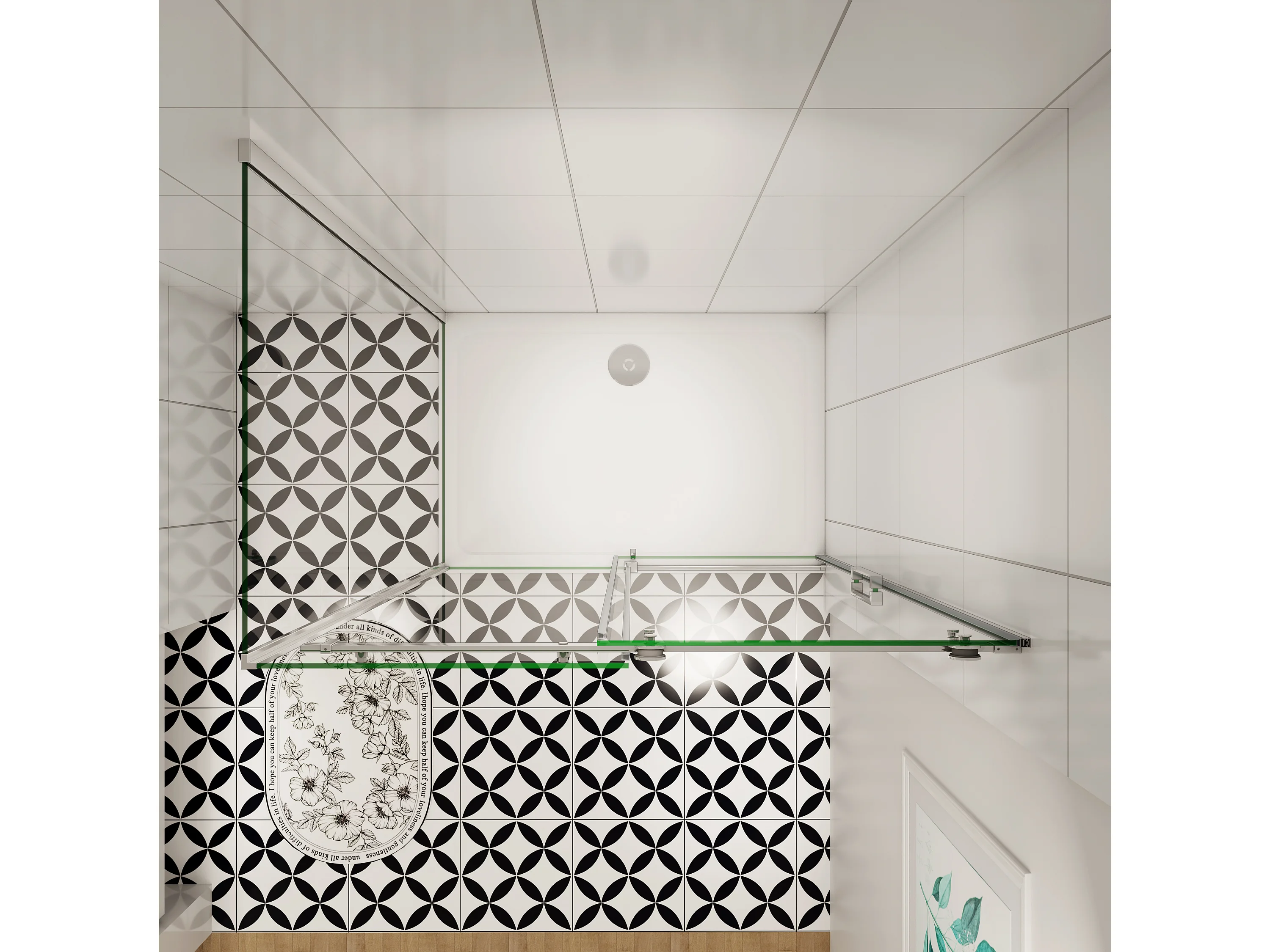 Paroi de douche à l'italienne 60+30x200cm avec retour pivotant - Verre 8mm trempé - Avec barre de fixation 140cm recoupable