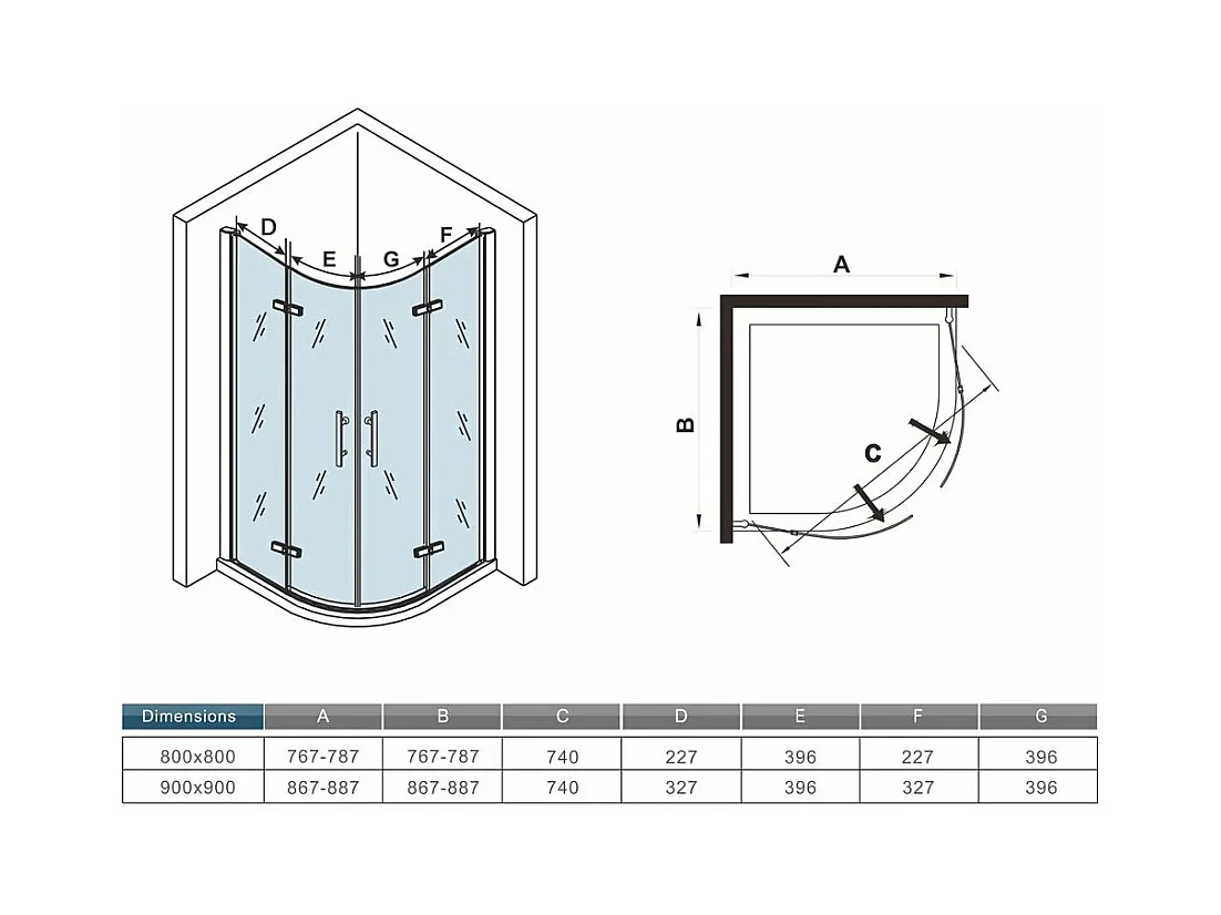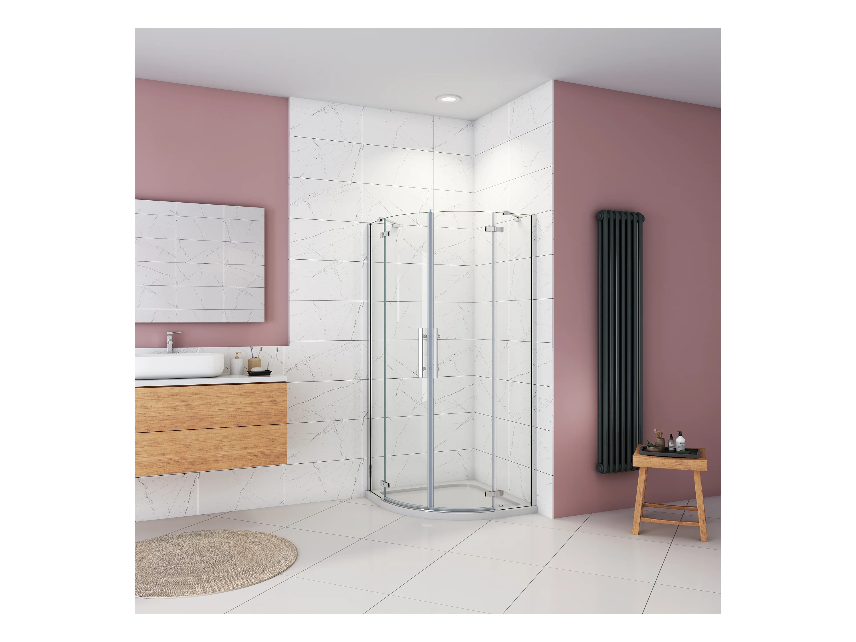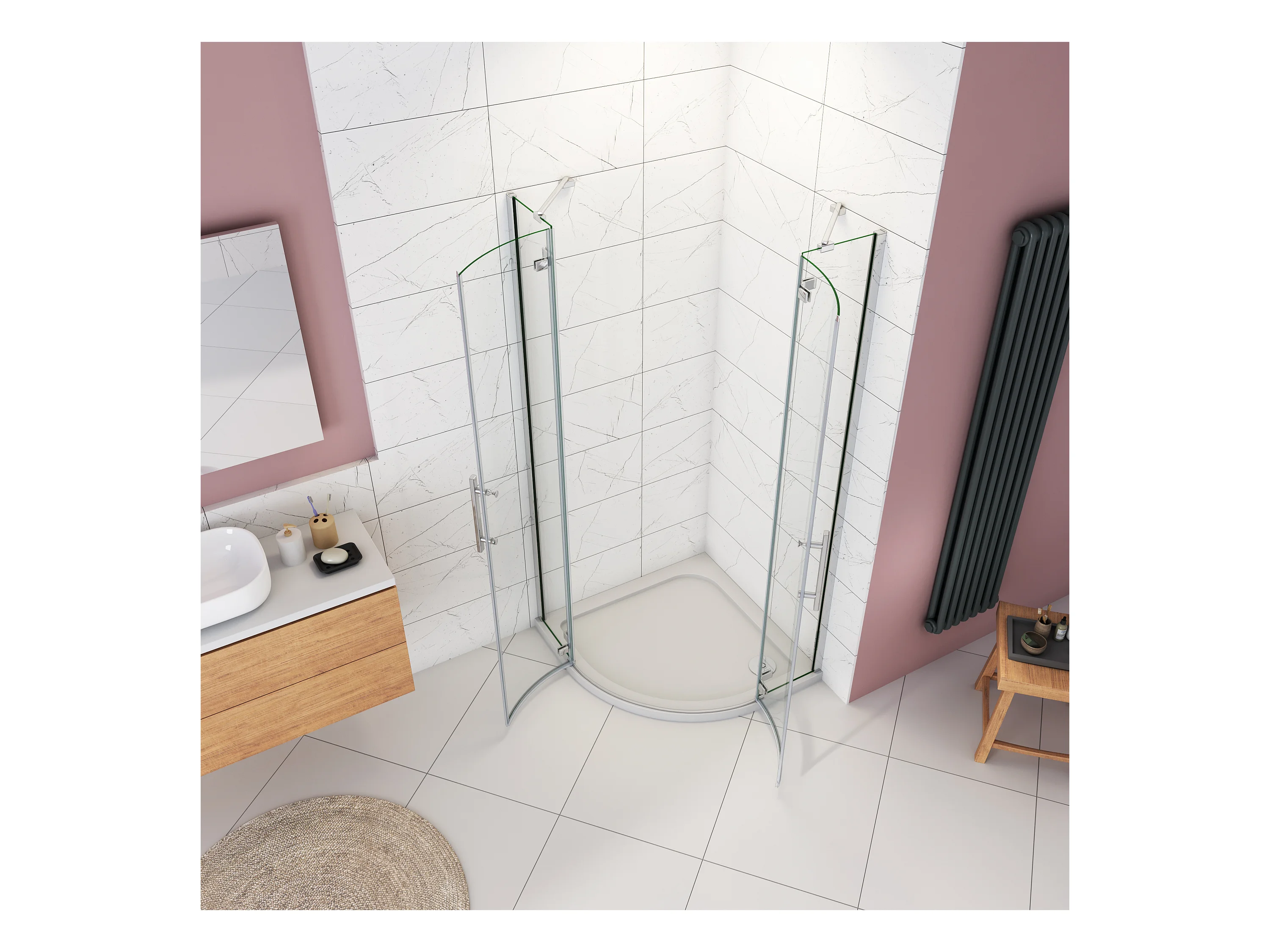 AICA Cabine de Douche Quart de Cercle 90x90x195 cm,Portes Pivotantes 180°, Verre Sécurisé 6 mm