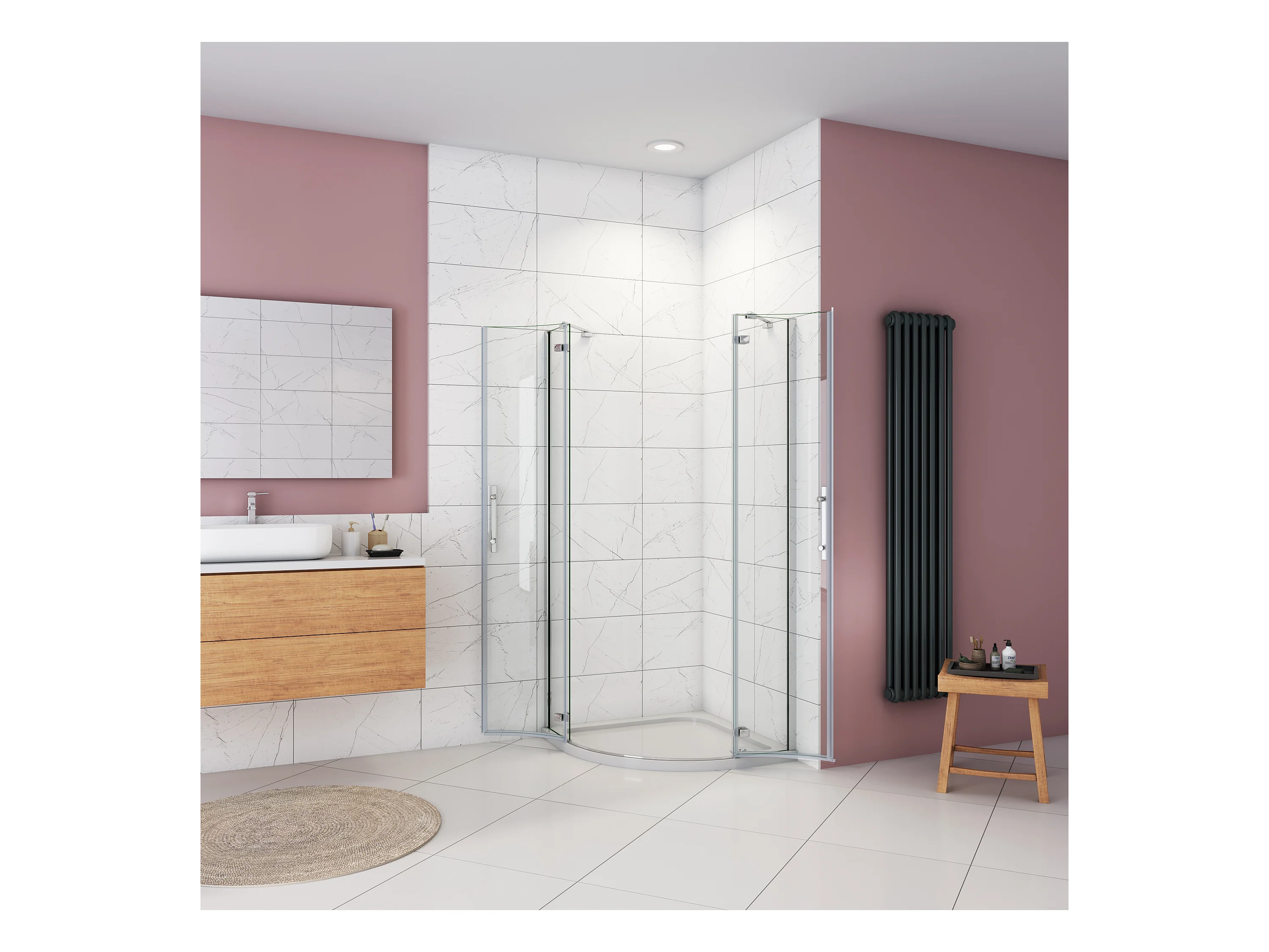 AICA Cabine de douche en quart de cercle chromé 90x90x195cm,Cabine de douche intégrale d'angle,porte de douche pivotante