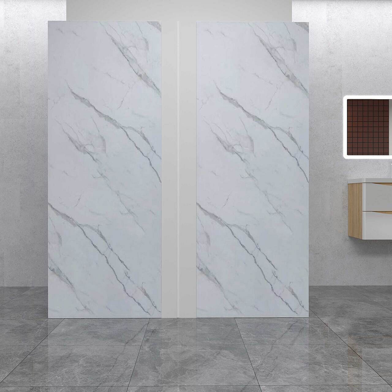 AICA Lot de 2 panneaux muraux de douche effet Marbre en Aluminium avec 1 profilés — L80xL90xH210 cm , Protection murale,Antimoisissure,Facile pose