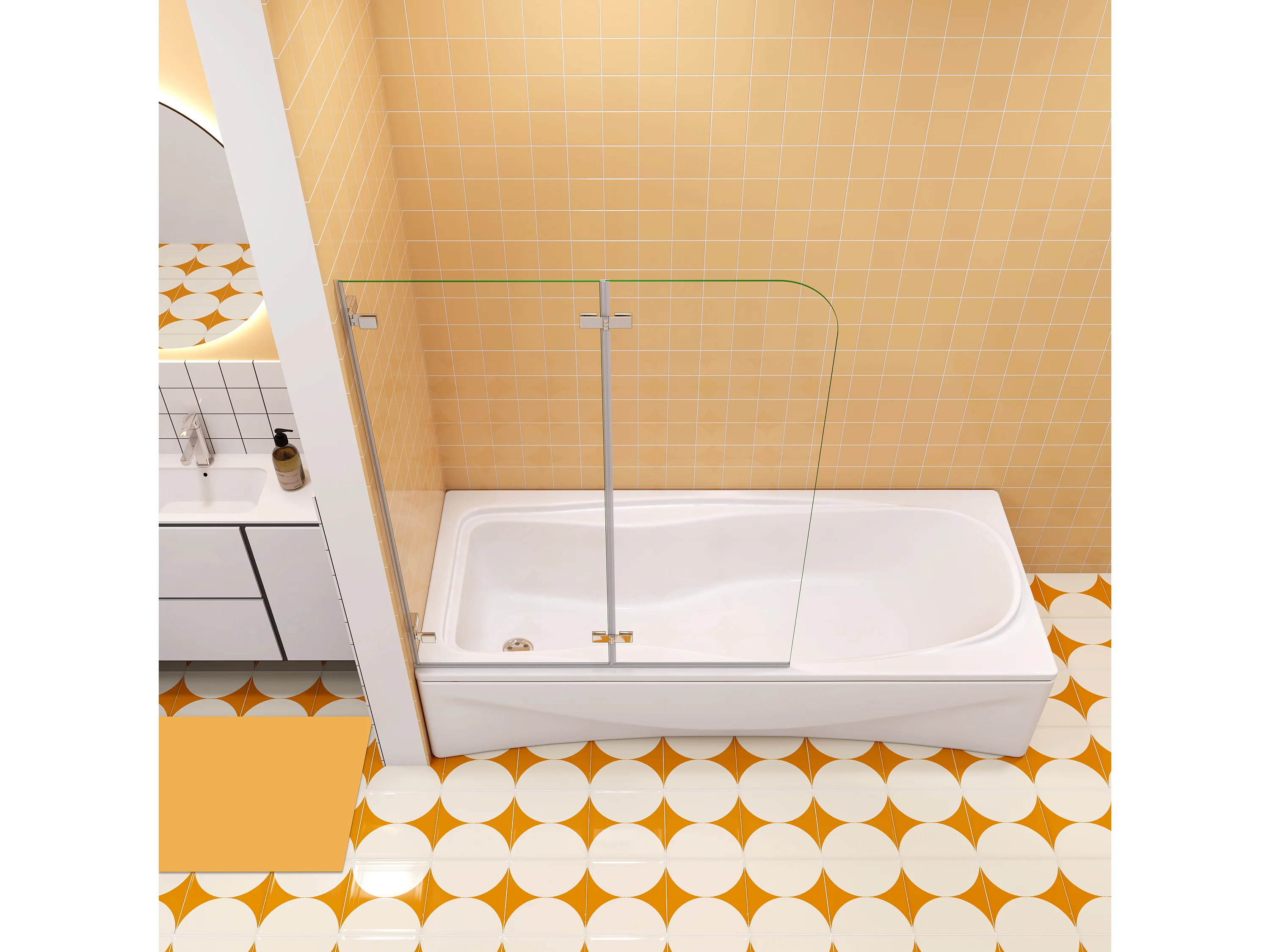 Pare-baignoire pivotant et pliant 100x140cm avec paroi fixe 80x140cm, paroi de baignoire en 6mm verre de sécurité