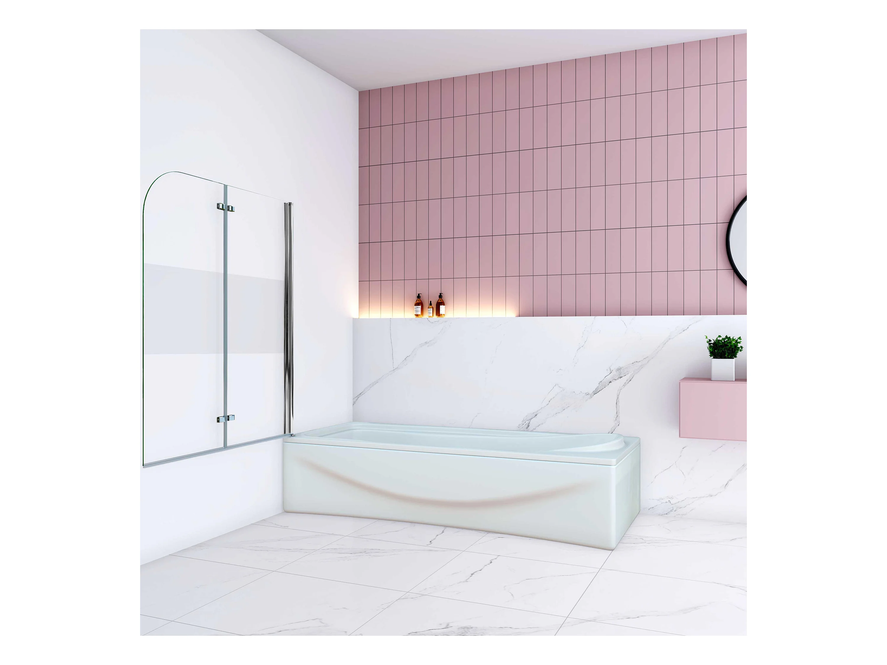 AICA Pare baignoire Chrome au angle arrondis pivotant 180°–L90xH140cm —bande central dépoli et style industriel – 6mm verre anticalcaire