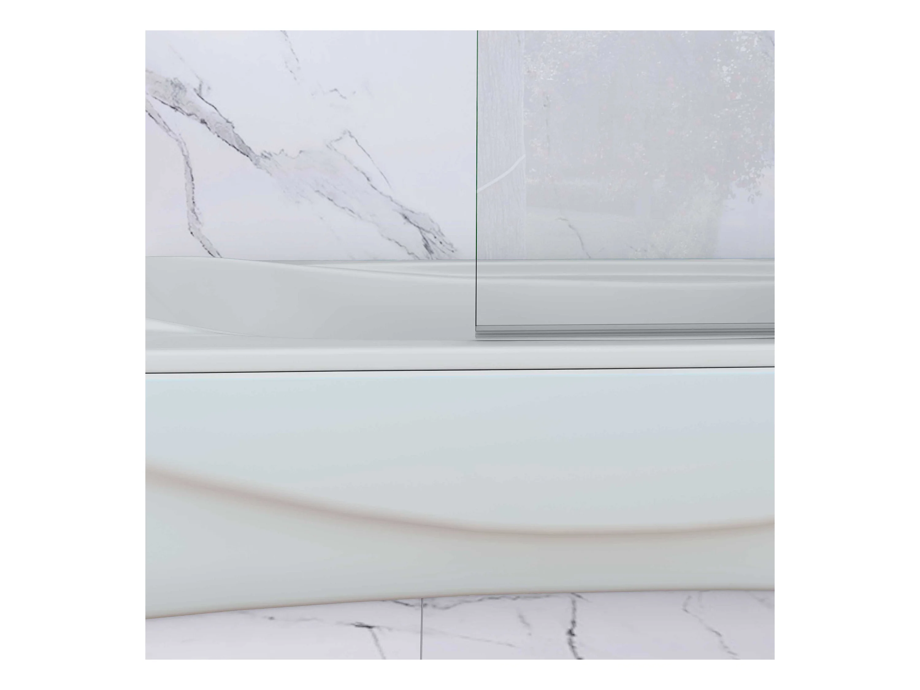 Pare-baignoire 90x140cm pivotant et pliant, paroi de baignoire installé à gauche en verre anticalcaire et sablé au centre