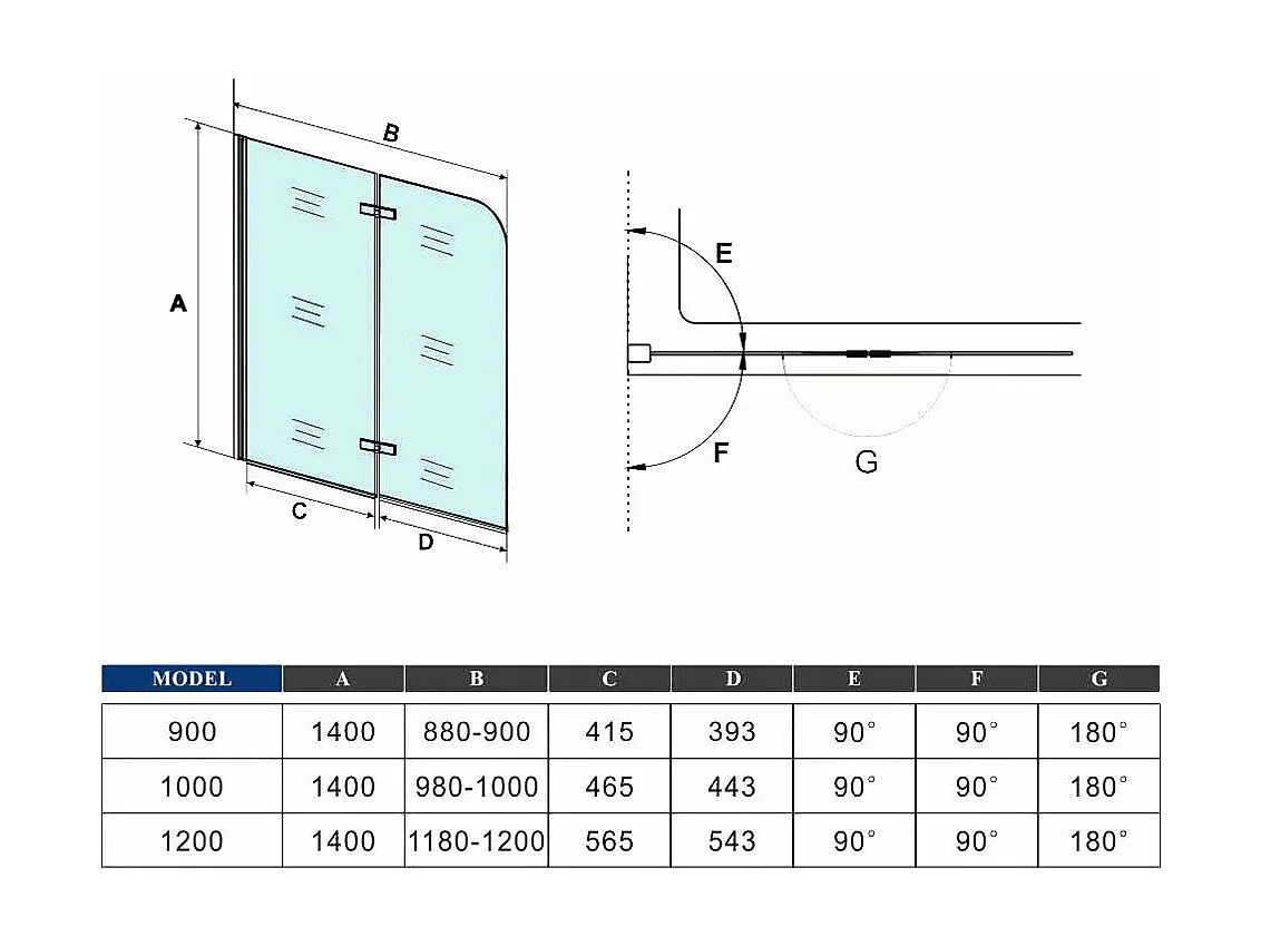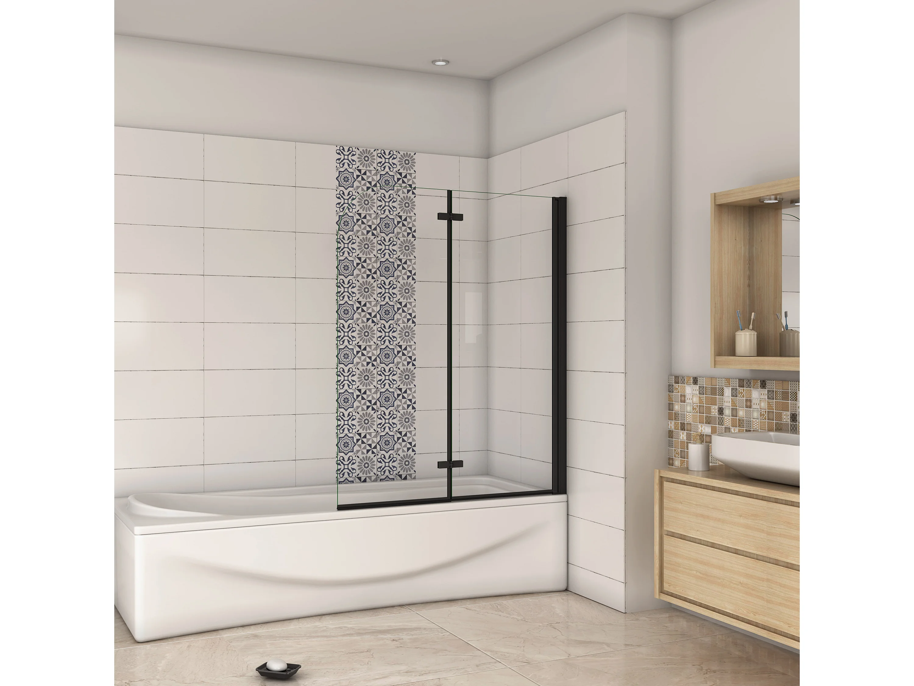 AICA pare baignoire noir pivotante pliant 100x140cm,paroi fixée,5mm verre anticalcaire,noir mat en métal style et simplicité