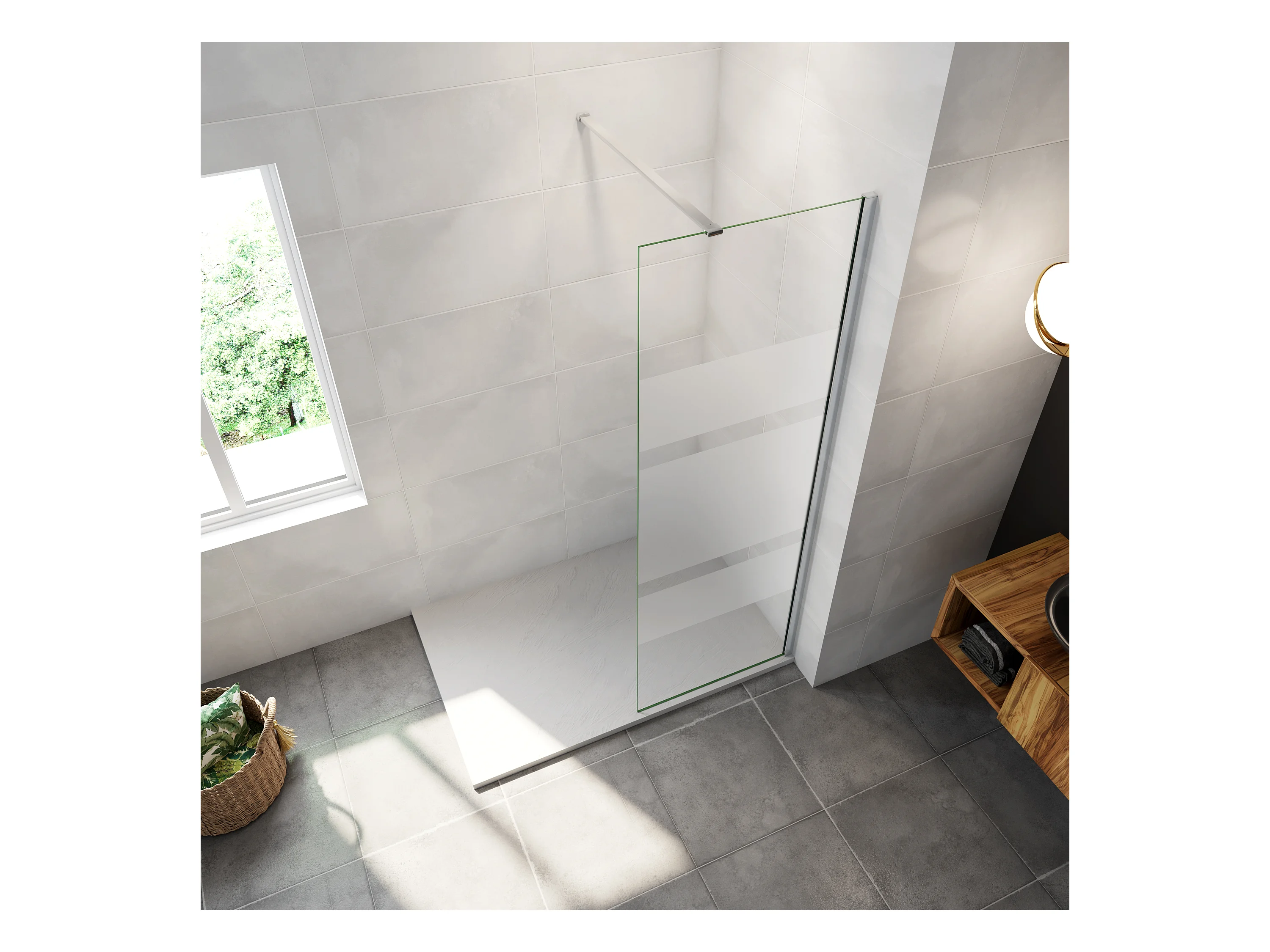 AICA paroi de douche à l'italienne 60x190cm,6mm verre anticalcaire avec bandes horizontales sérigraphiées,barre de fixation extensible 70-120cm