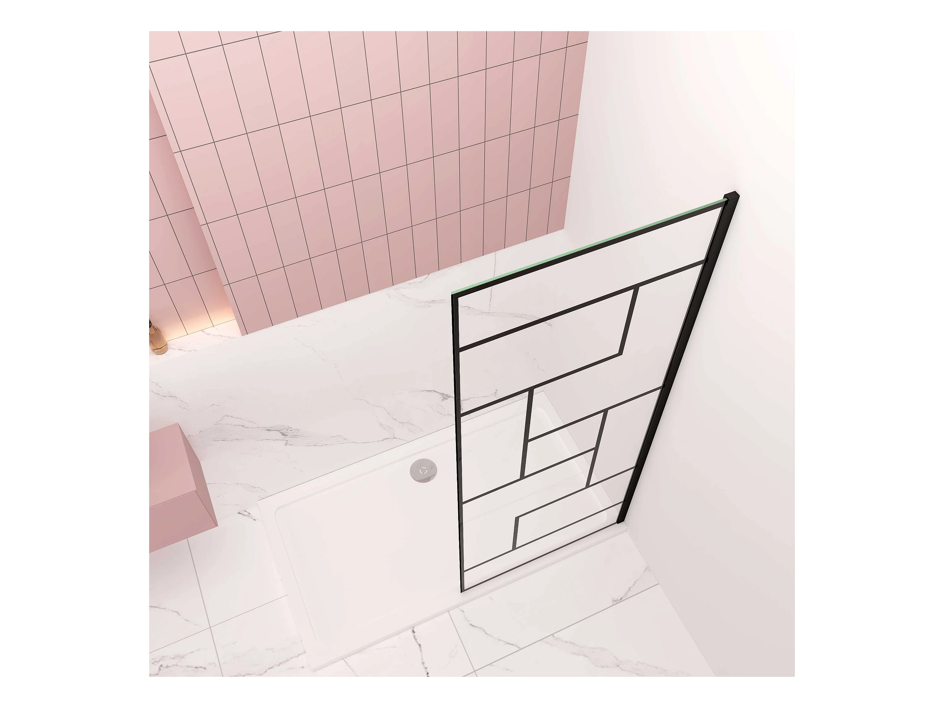 AICA Paroi de douche à l'italienne L140 x H200cm style moderne — Noir mat—8mm verre anticalcaire, Installation réversible et Accès facile