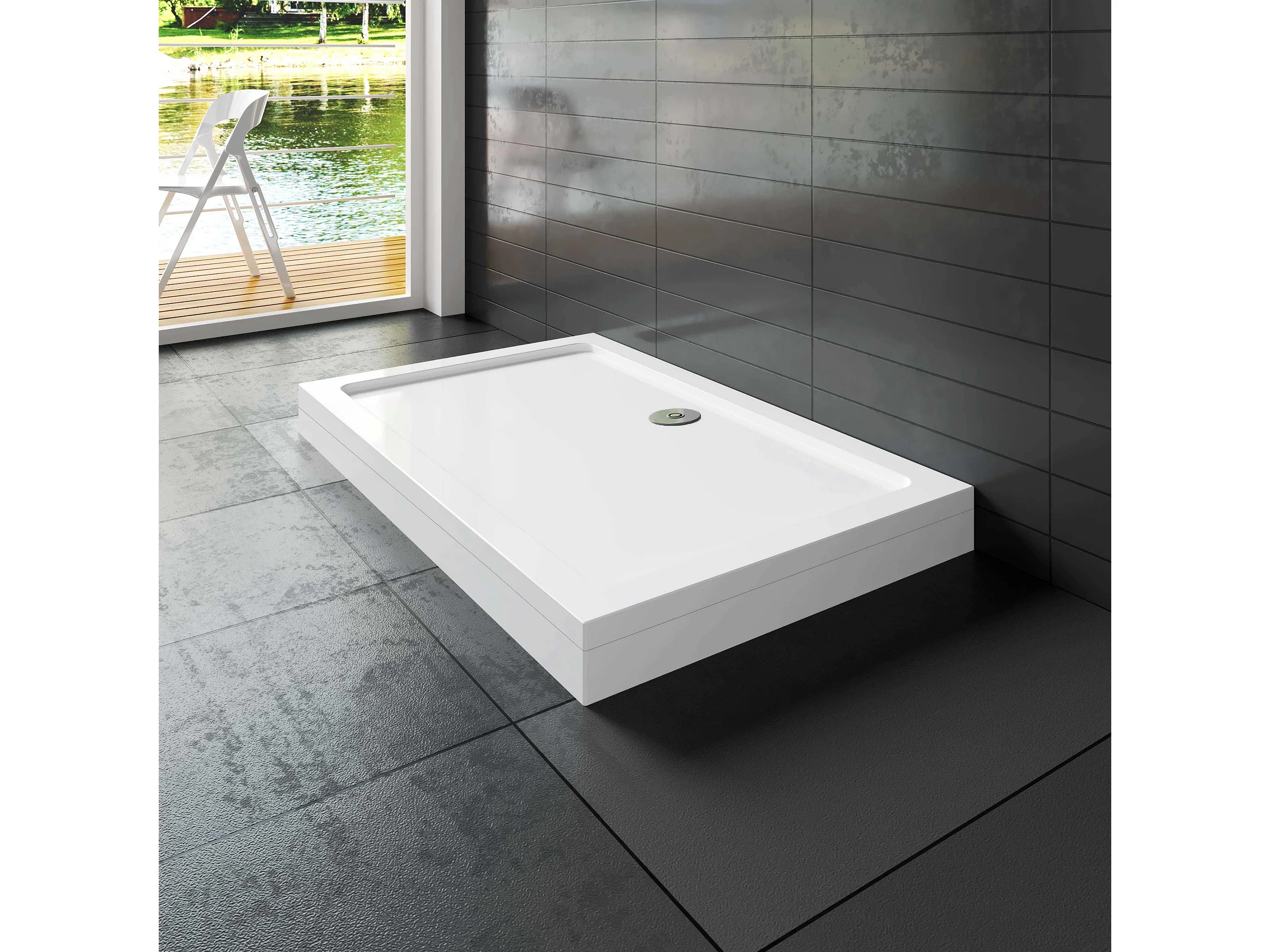 Aica Receveur de Douche blanc rectangulaire 140x70cm, Receveur extra-plat à poser ou à encastrer, avec le kit de pieds