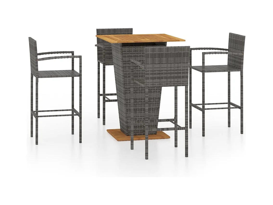 Arvind Ensemble de bar jardin 5 pcs gris poly rotin/bois massif acacia