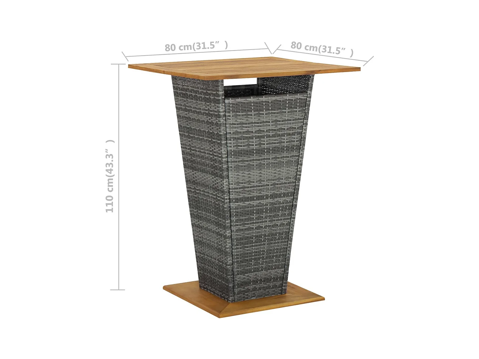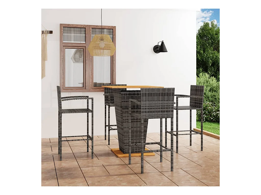 Pierre-Guillaume Ensemble de bar jardin 5 pcs gris poly rotin/bois massif acacia