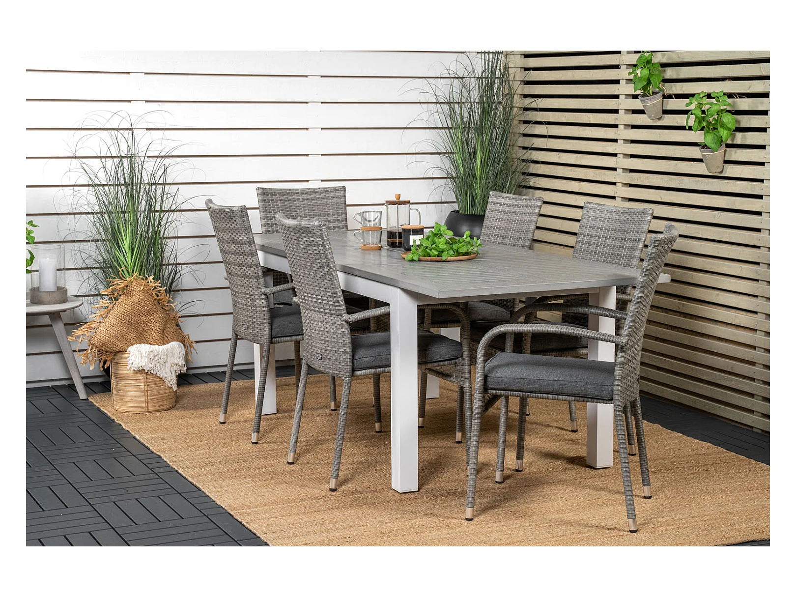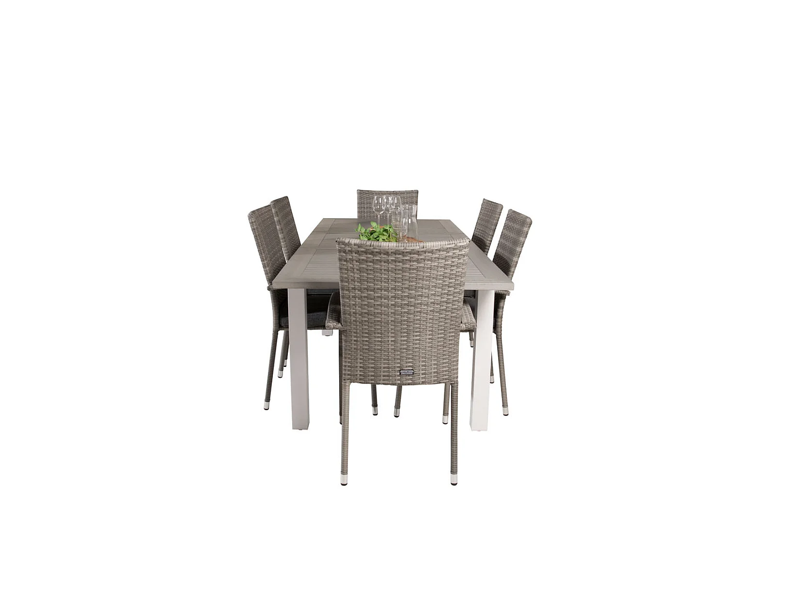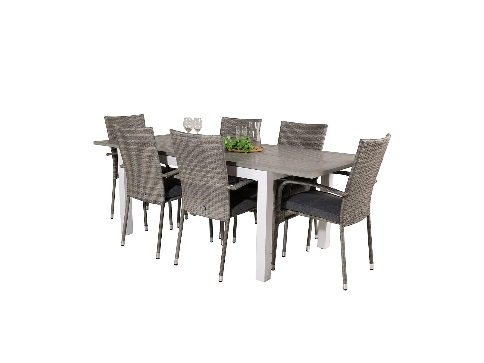 Albany Ensemble table et chaises de jardin, table 90x152/210cm et 6 chaises Anna, gris, crème.