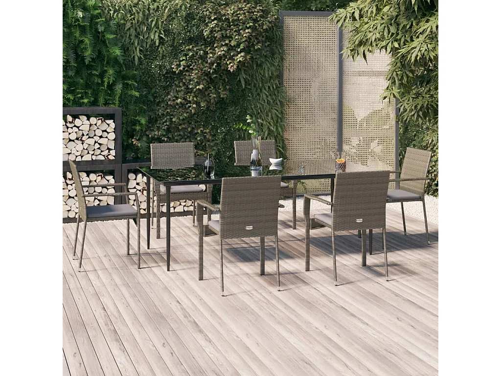 Vernon Ensemble à manger de jardin coussins 7pcs Gris et noir